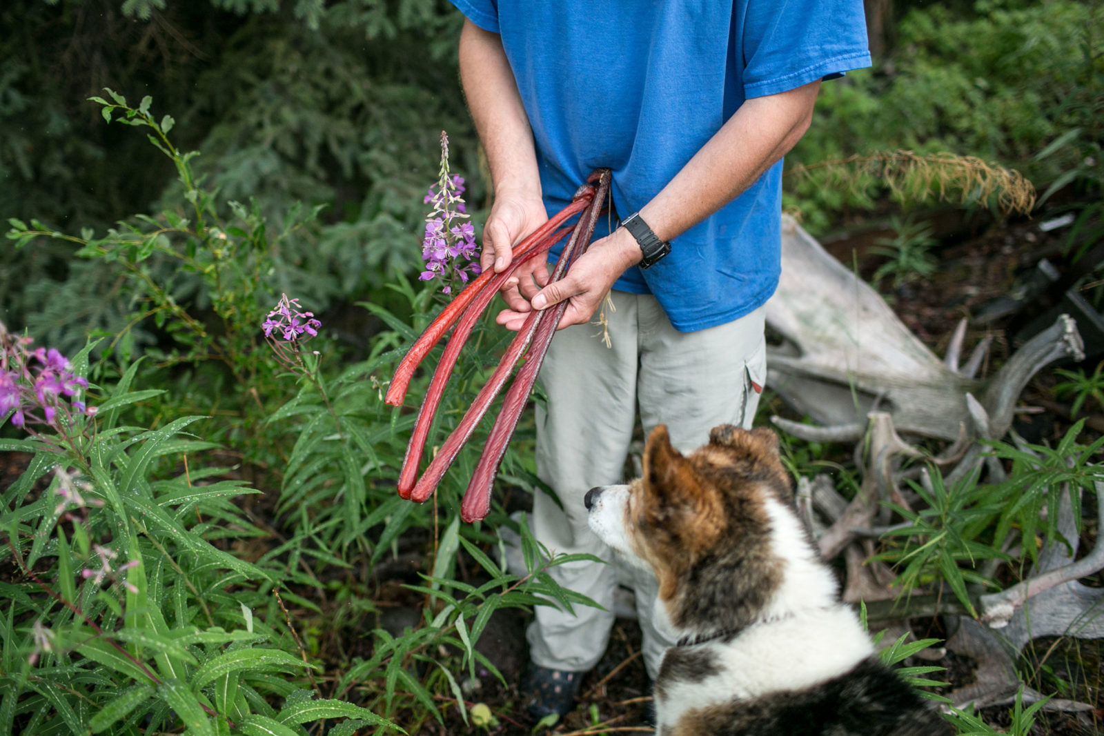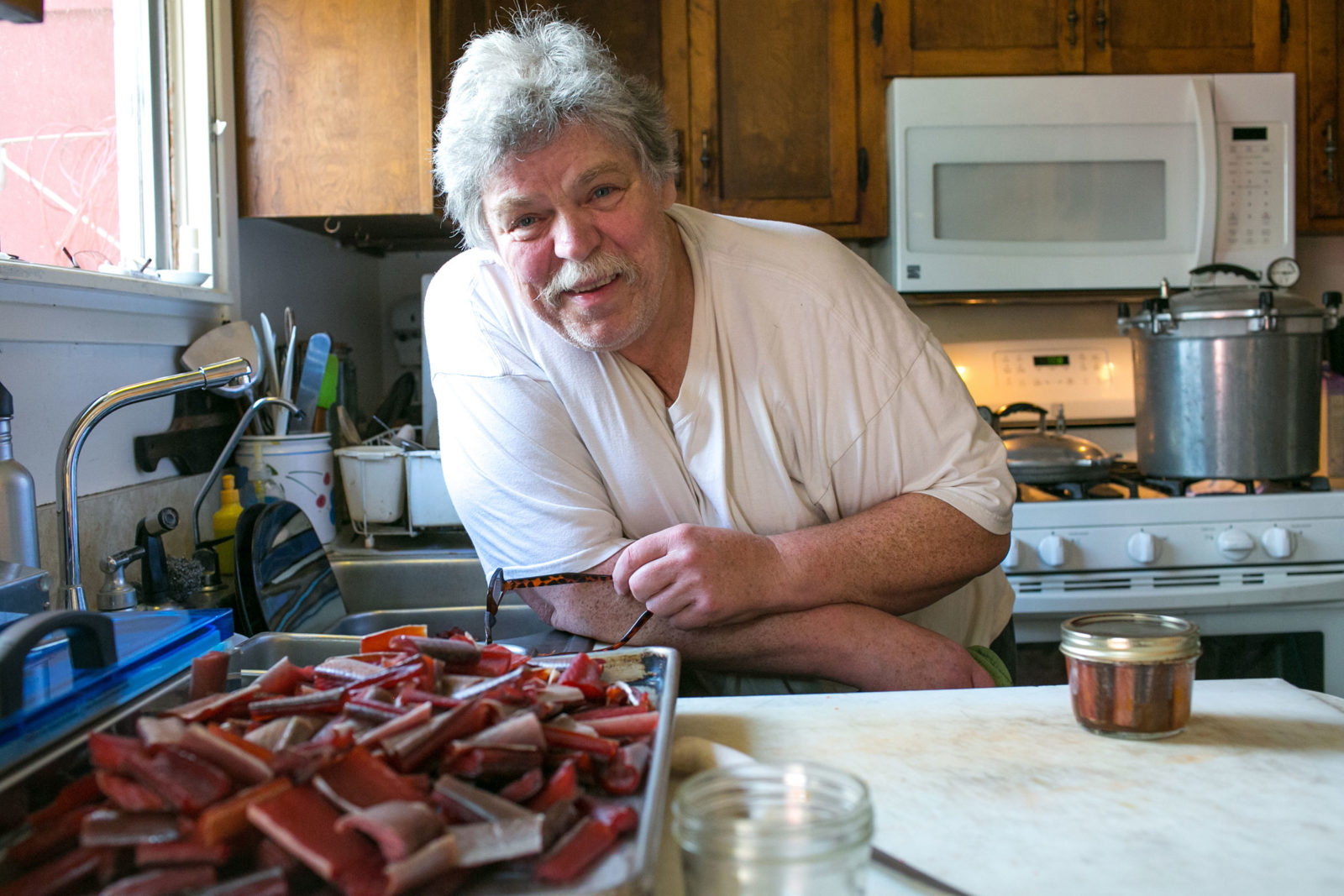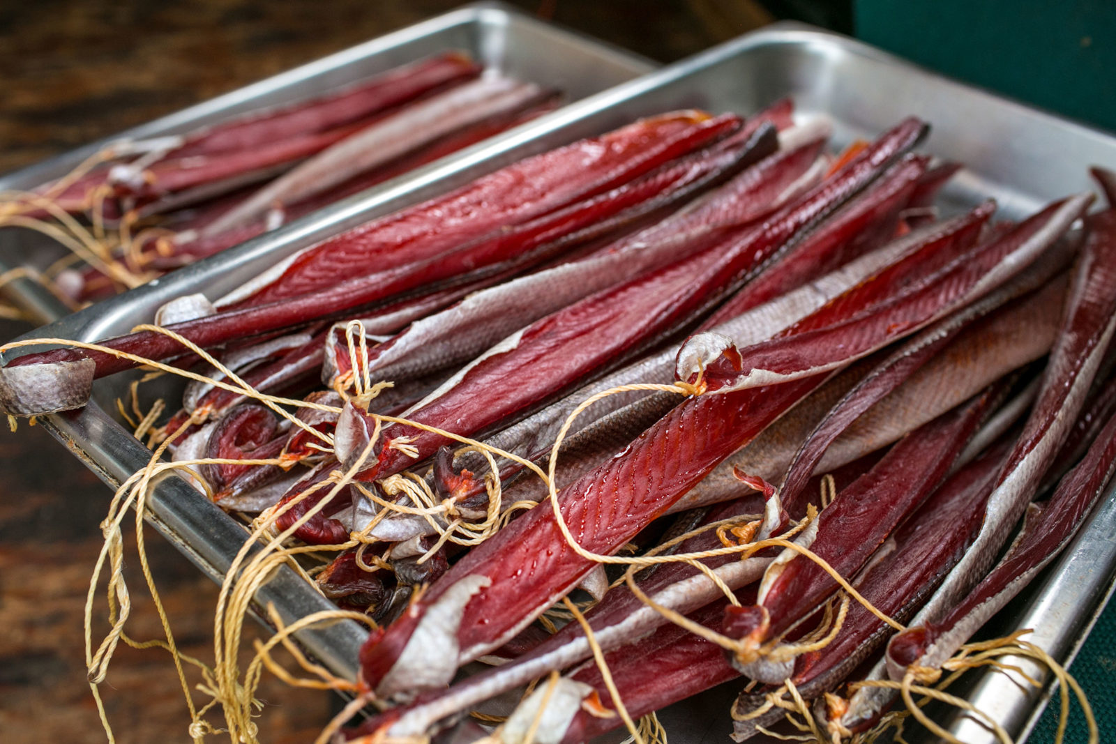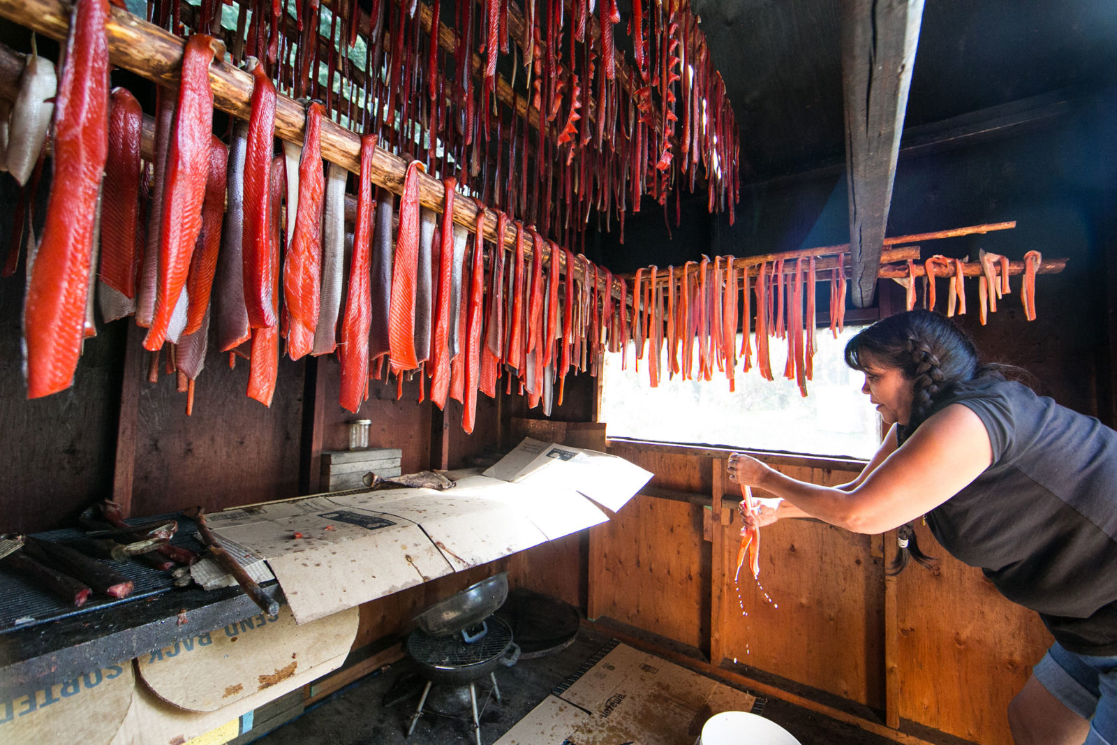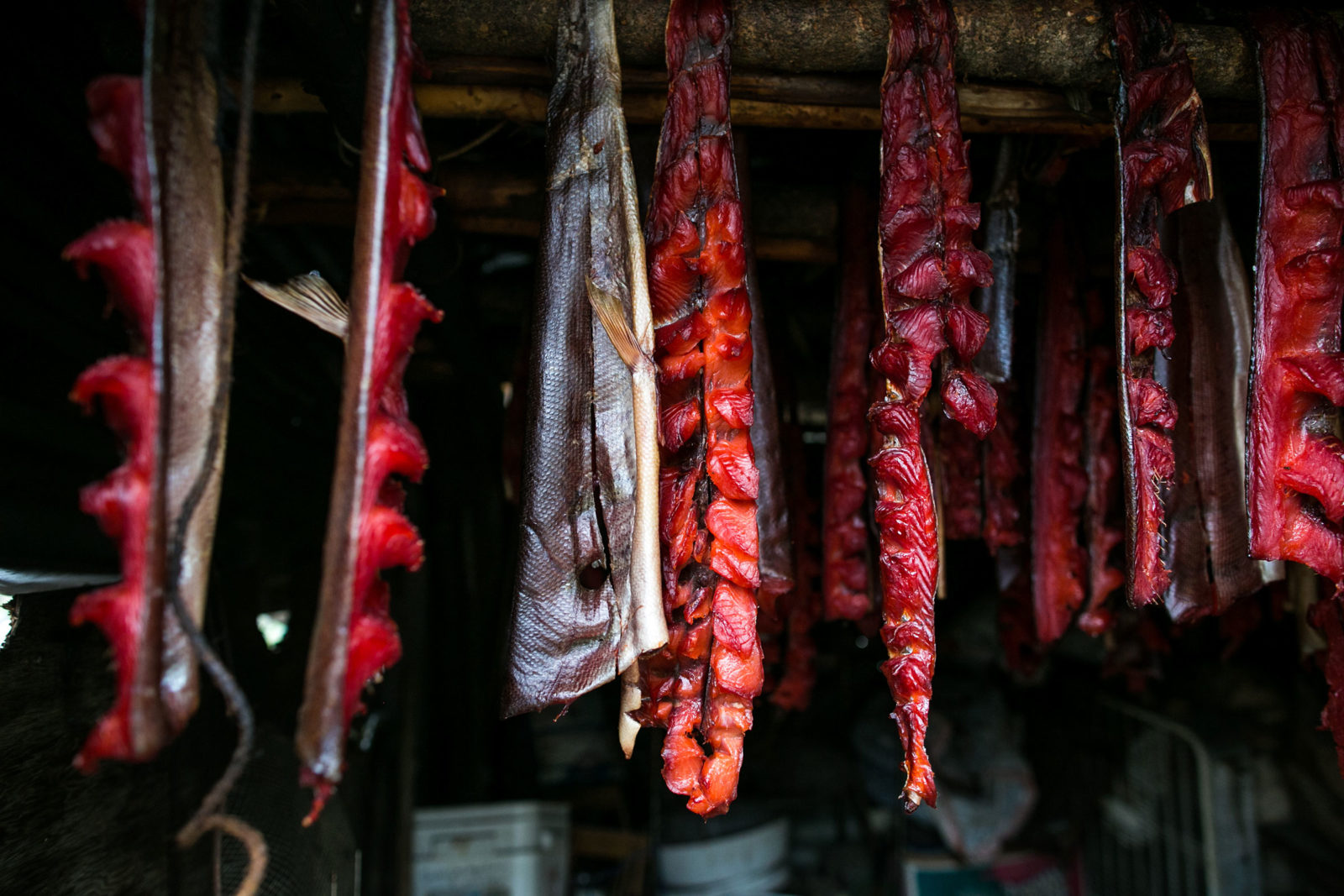 Of these groups, the Ahtna Athabaskans have been here the longest. That’s what Tursy is doing here and this morning she is telling me about her specialty: smoked salmon oil. “It was made two years ago,” she tells me, “from salmon heads. The longer it sits, the better it tastes,” she explains. “This is my gold!” Together we dip dried salmon into the bronze richness and savor the feeling of a connection to the salmon, of nothing wasted, of a land that provides.