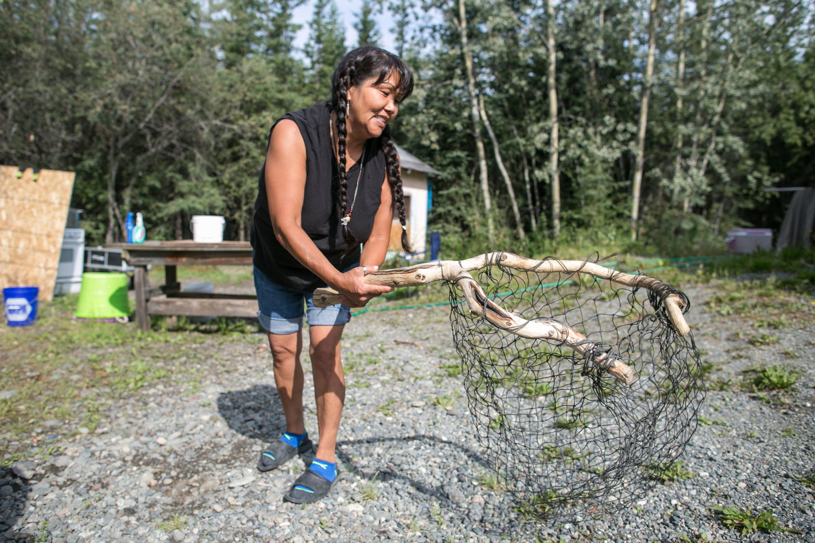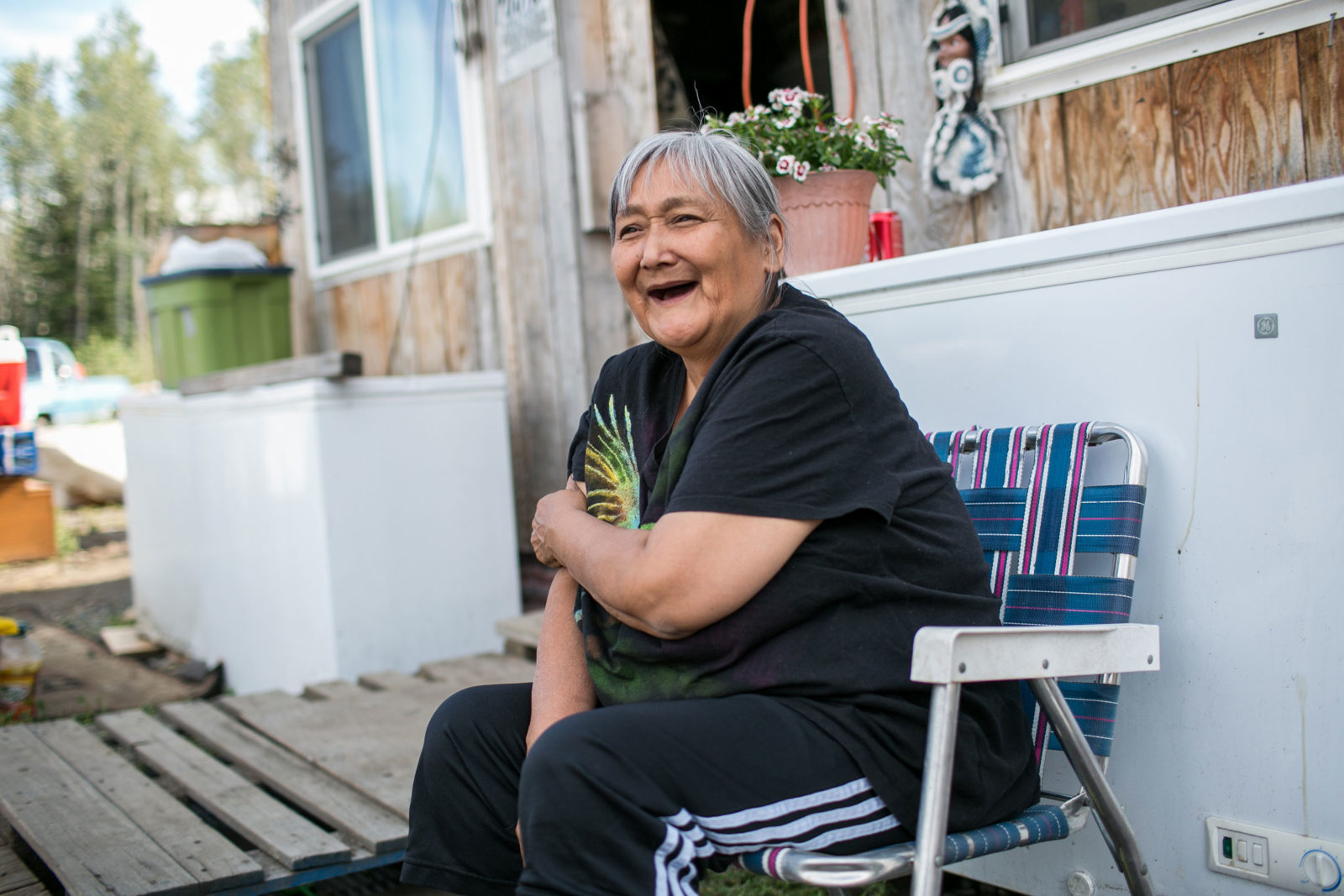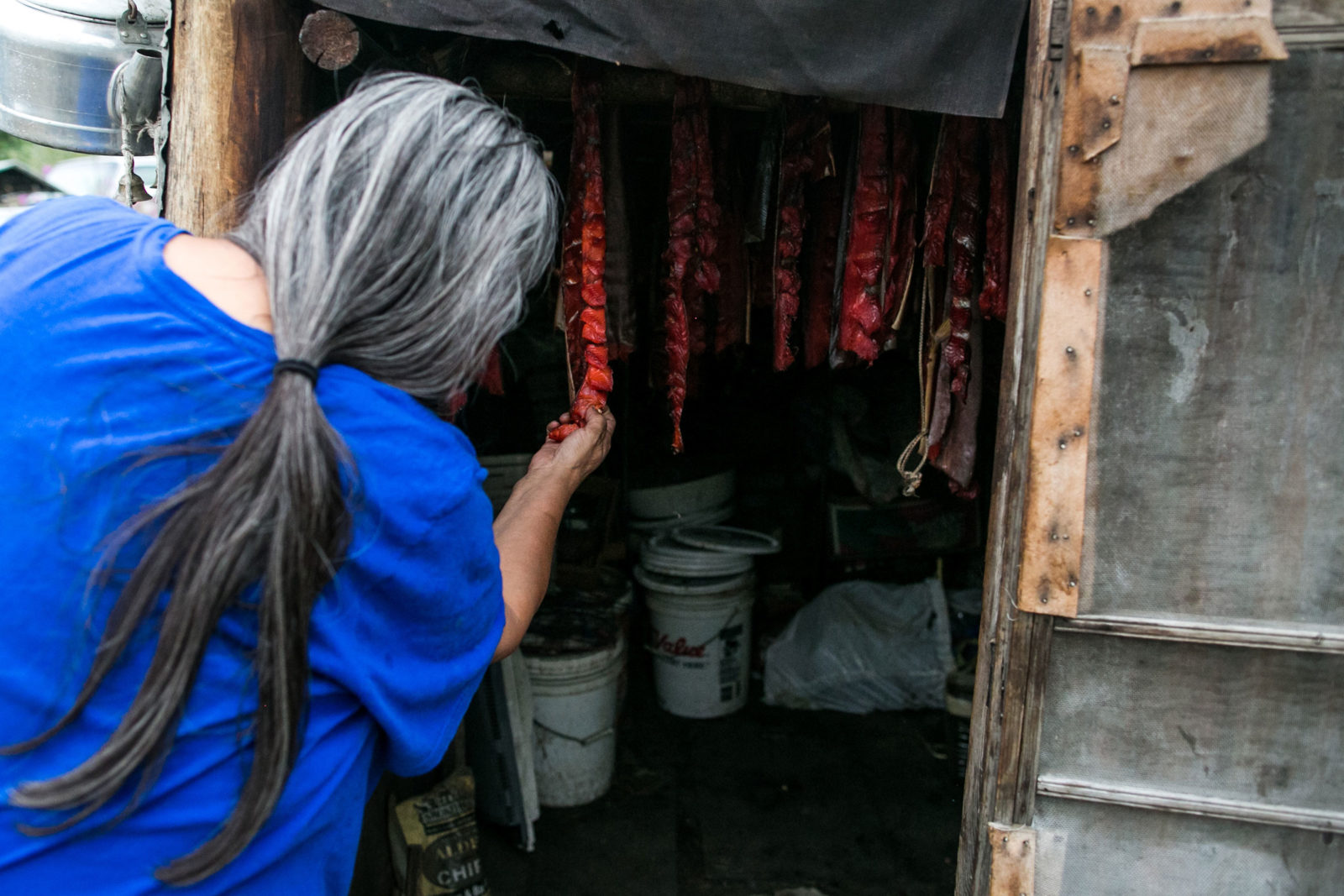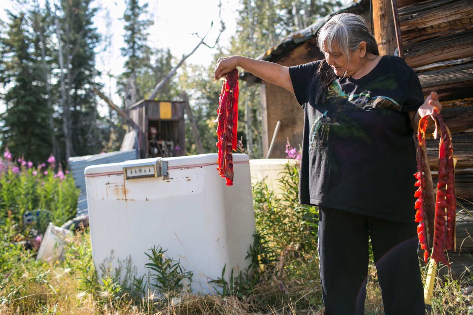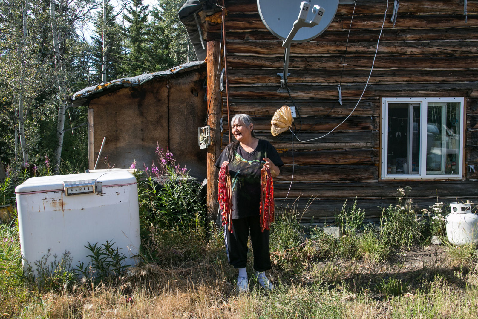 A mother of four and a grandmother, Tursy lives alone not far from the river that characterizes her summer. When she tells me that no one helps her put up all this salmon every season, at first I have to wonder, but as I spend more time with her, I begin to notice that she doesn’t stop moving. Of course she is doing this all herself, her energy knows no limits.