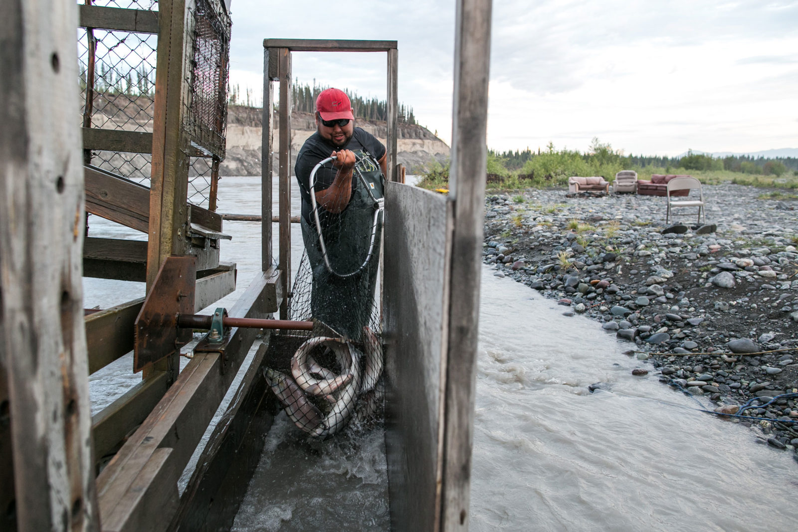 The fish are pulled from the mouth of the river by commercial fishermen, by dip-netters in the canyon upriver in Chitina, from the holding tanks of fish wheels along the middle to upper river, and by sports fishermen at tributaries that feed into the great river.