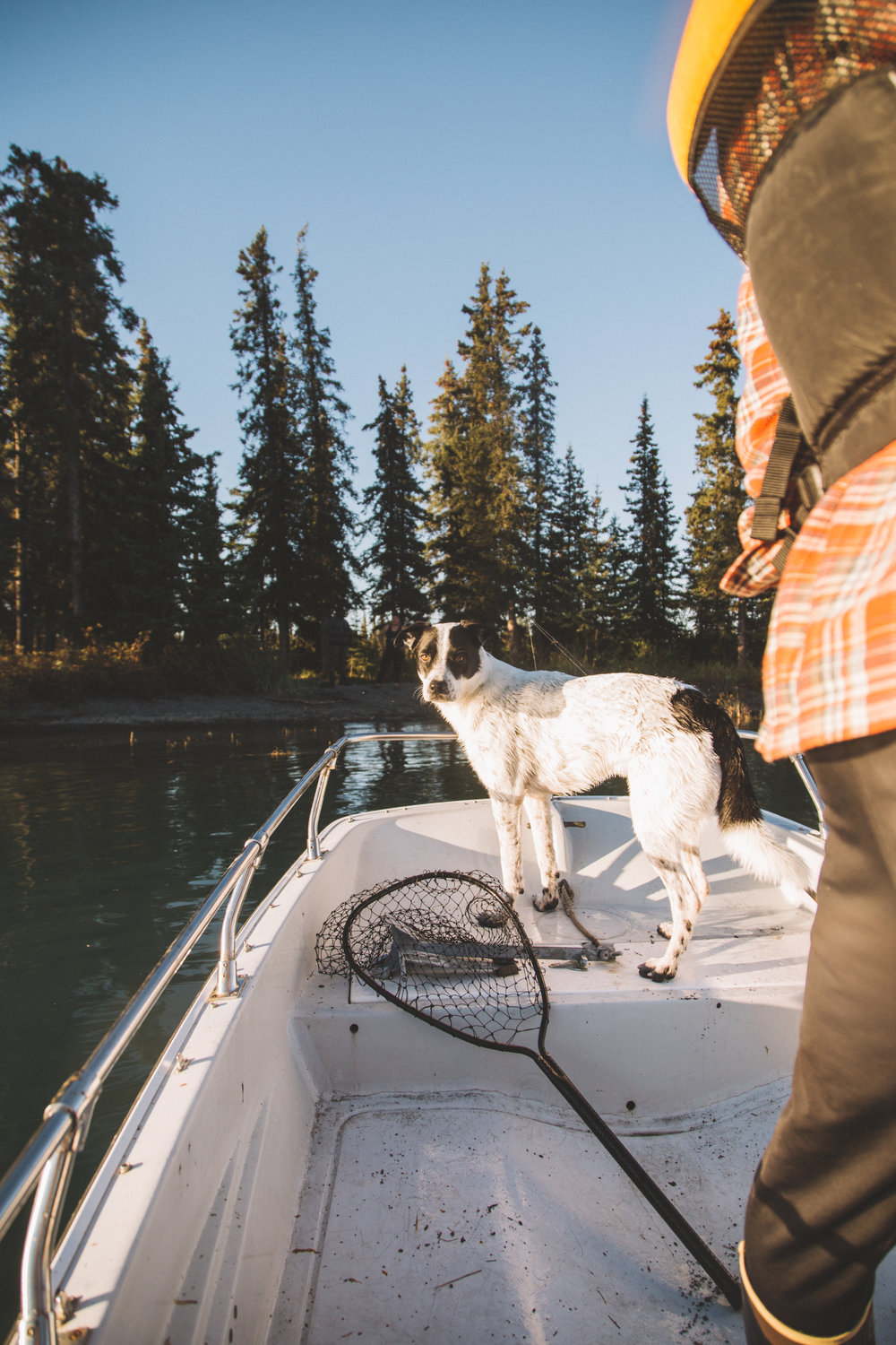 It’s hard to complain, but after so many hours of unsuccessful fishing amidst the relentless teasing of very-nearby jumpers, we can’t help but suspect our techniques are inferior. So, with the wind picking up on the Lake and the sun casting longer shadows upon the River, we let our grumbling stomachs steer us across the windy surface of Skilak and back to the Caribou Clubhouse.