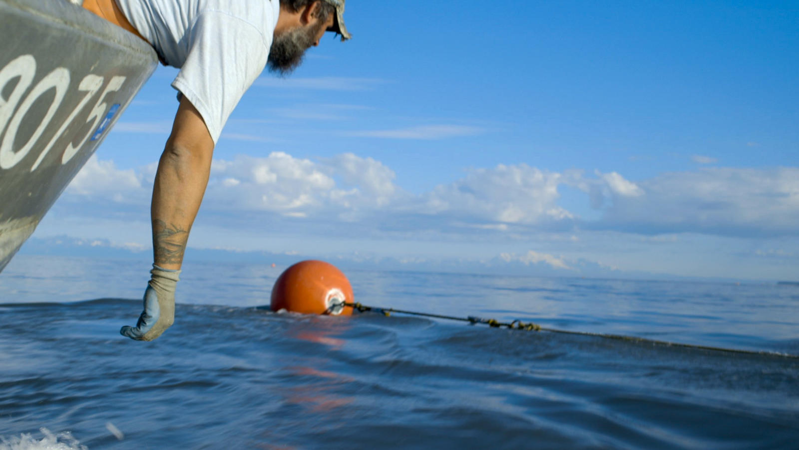 But today, the nets are in the water. “They’re hitting,” Adam says and points to a splashing along the arc of net where the cork floats are already starting to sink below the surface. “Yeah,” he says. “Today might be a good day.”