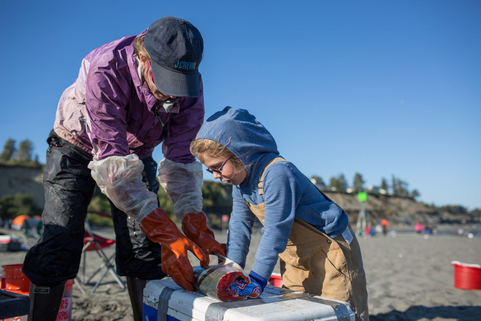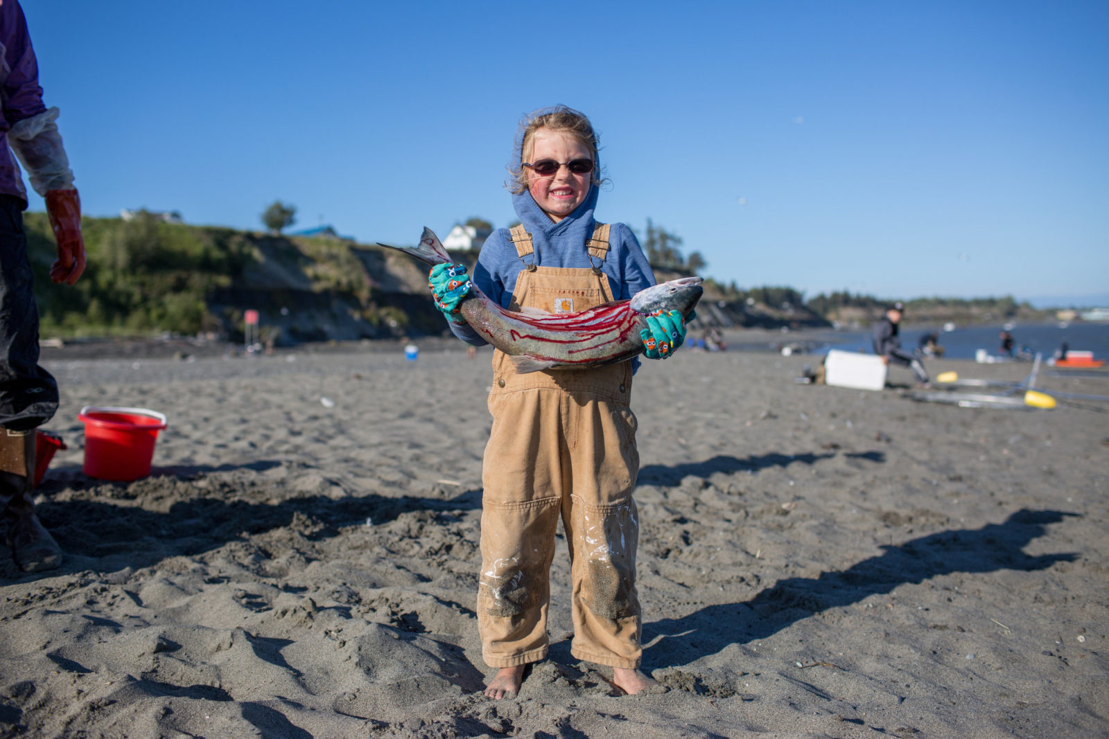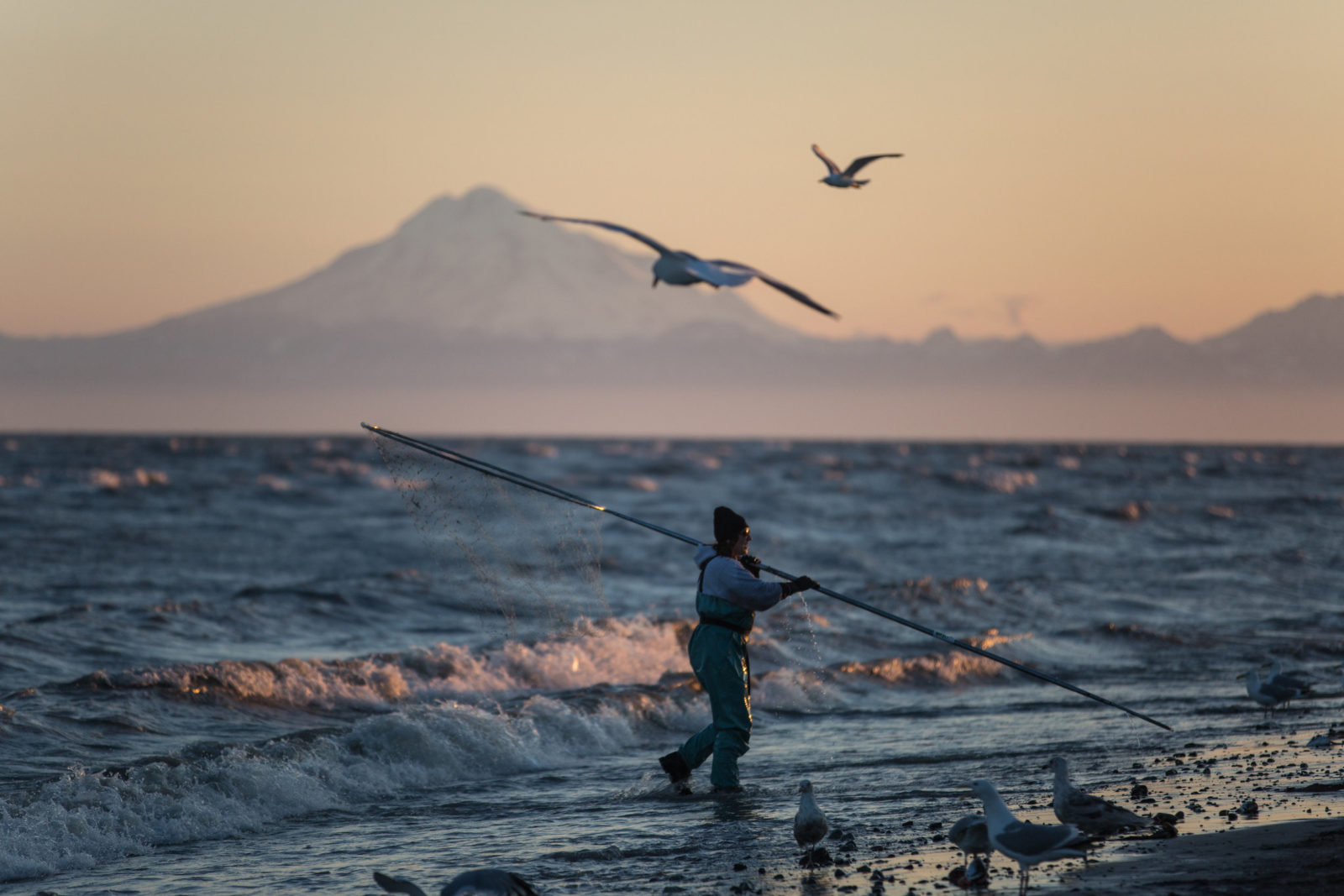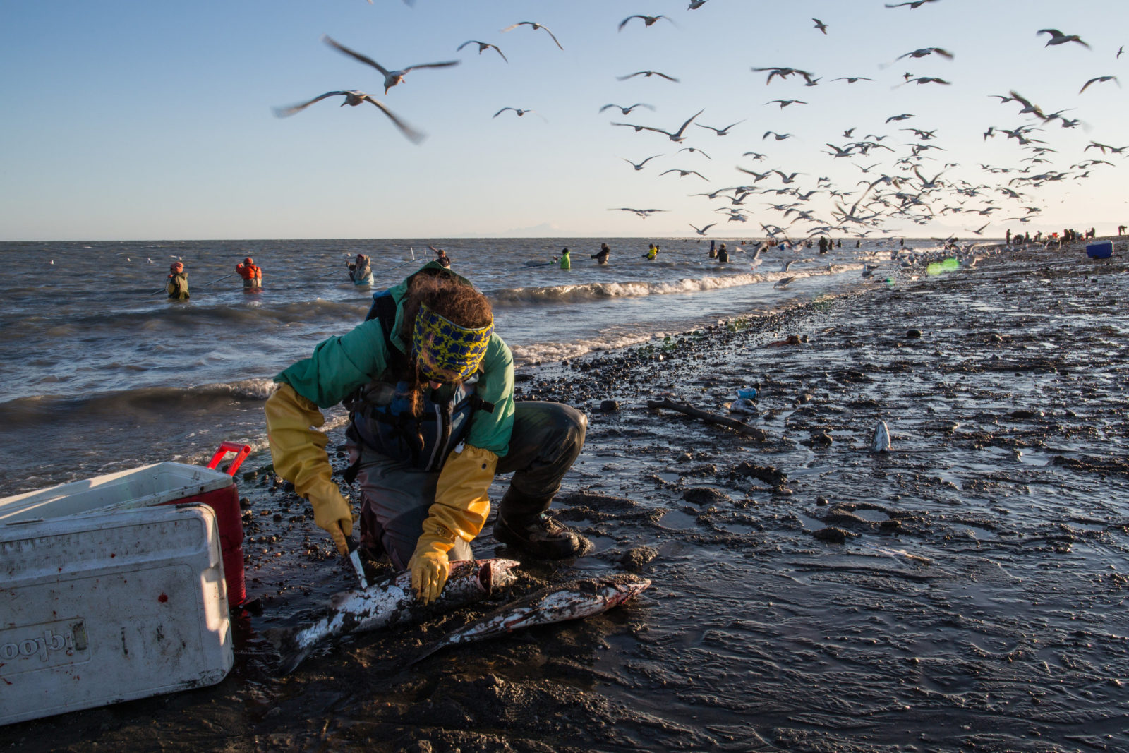 The day was slow with a warm sun beating down on families of beach-goers. Kids came back to shocked moms completely caked in the mud of a slough that runs behind the river. Dads and moms and grandmas and grandpas stood in a long line out in the surf where the waves of Cook Inlet slapped them in sets. One after another the white atop the waves frothed in the wind, running over chest waders and down into boots.