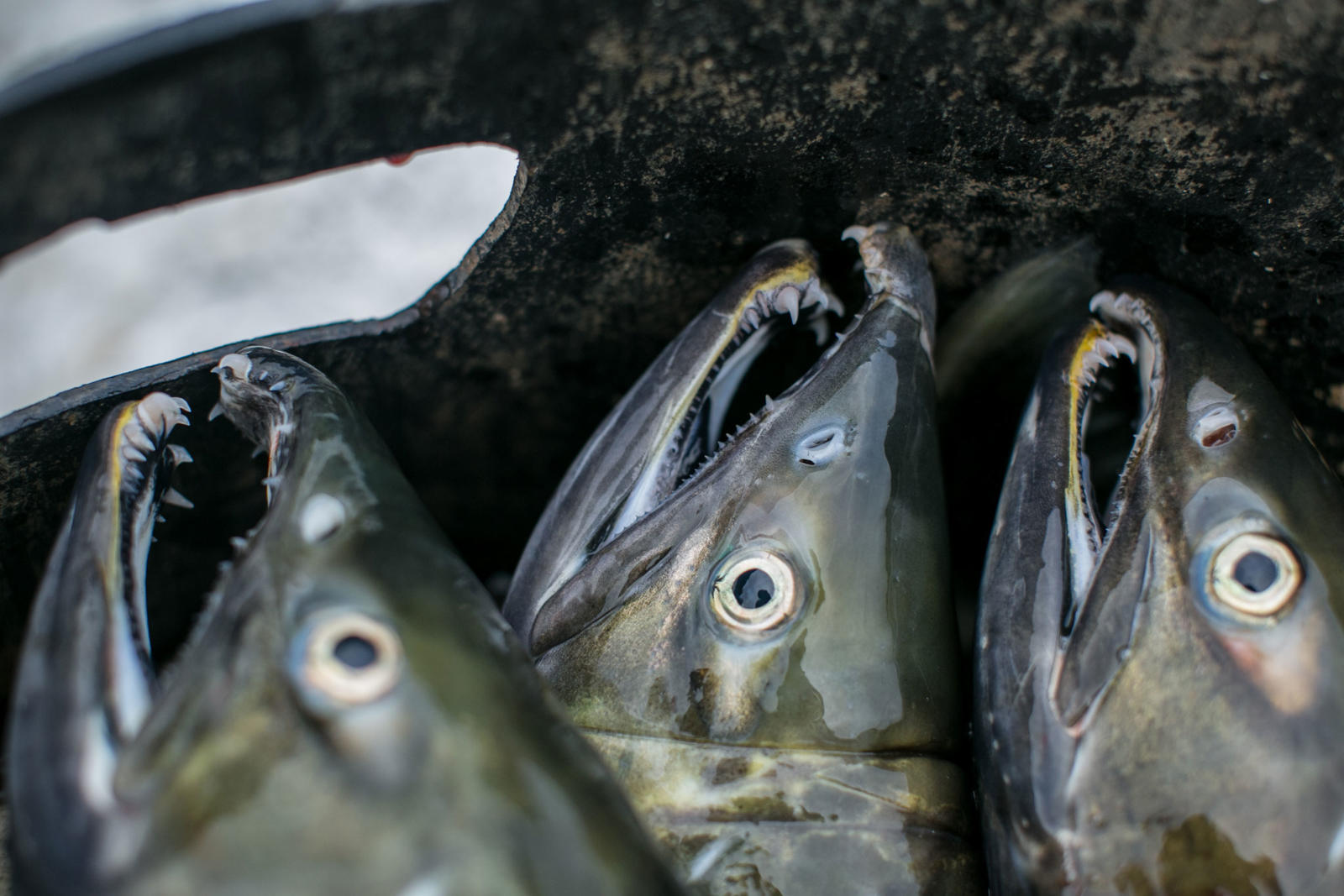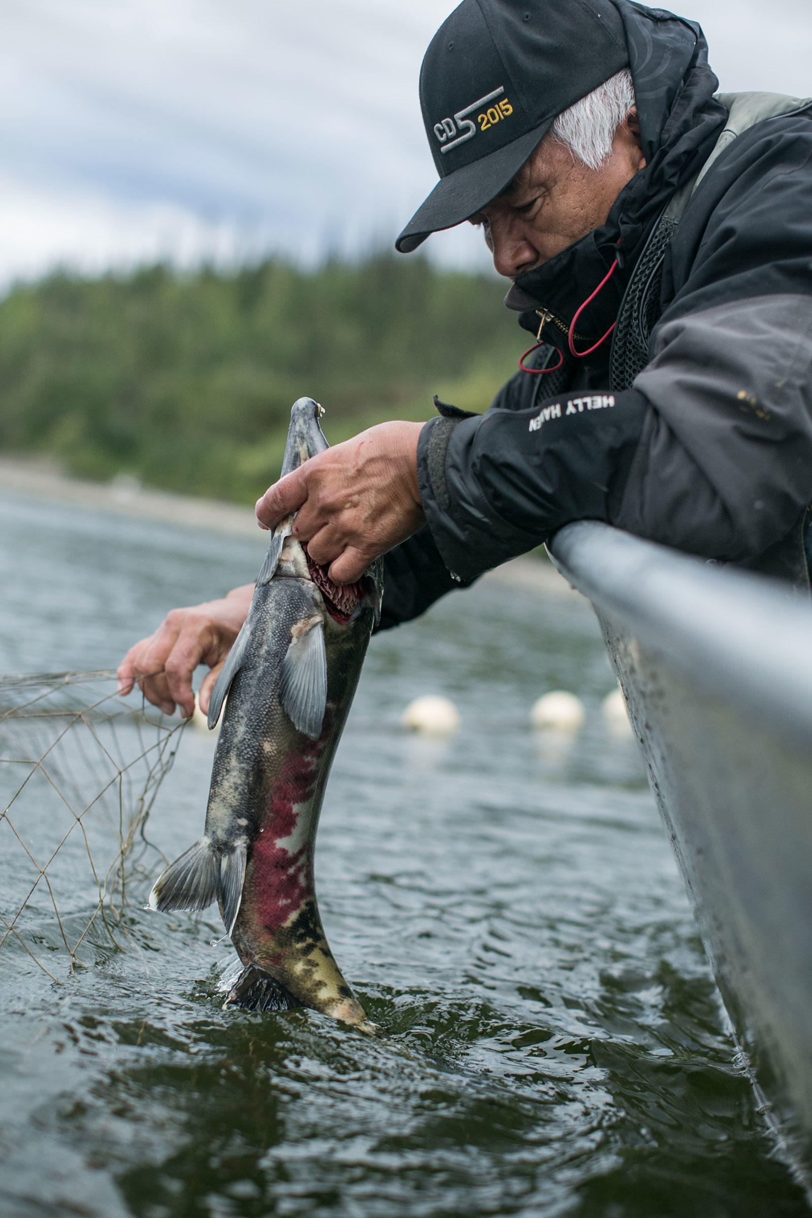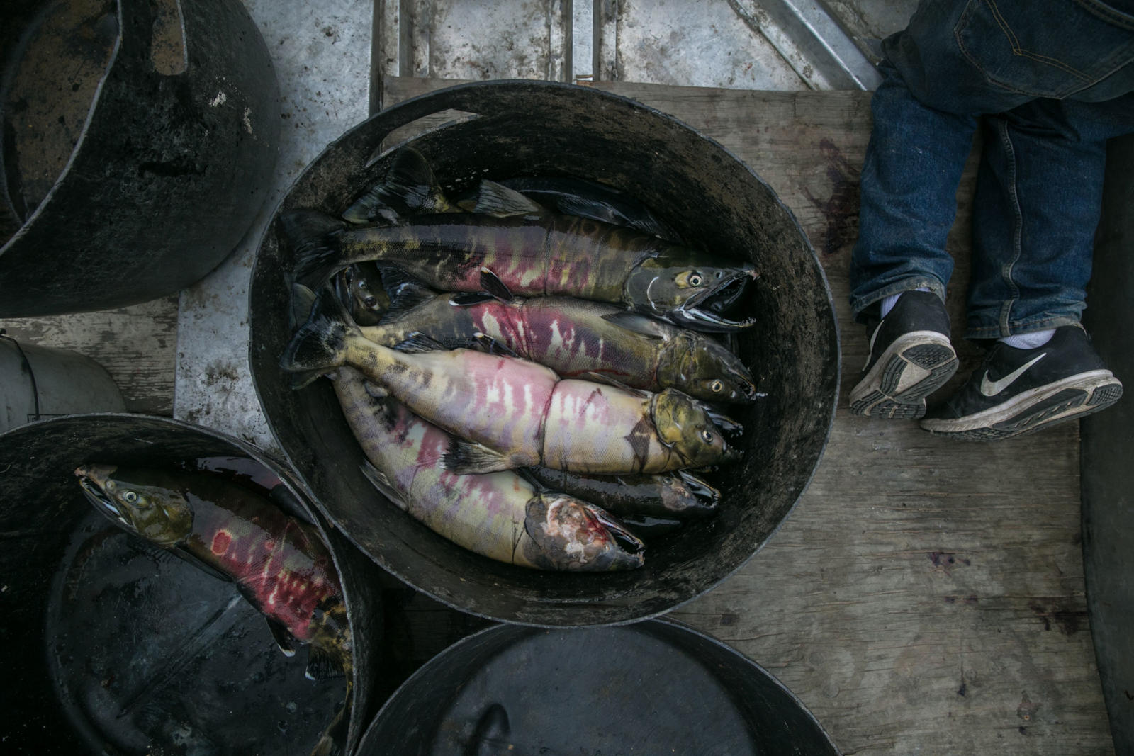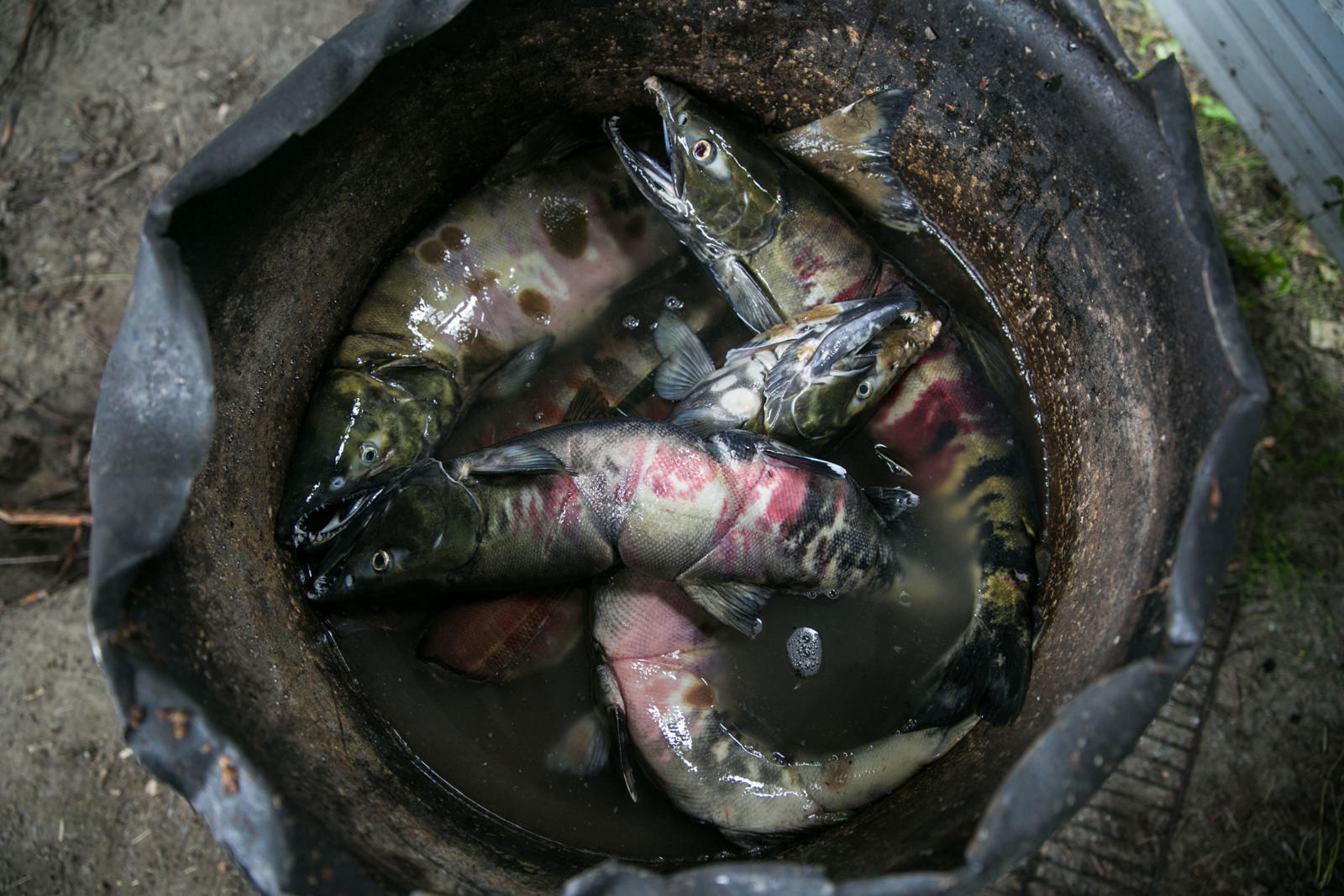 Steve Bergman is not only providing for his large extended family by fishing for salmon, he’s also feeding his dog team. He estimates he needs to catch about 2,000 chum salmon to feed his 17 dogs. Being nutrient rich, salmon provide a much needed resource for an active dog team. Chum salmon for dogs is cut in a way that preserves as much of the salmon as possible. For instance, the salmon is cut from the tail all the way through the head and dried.