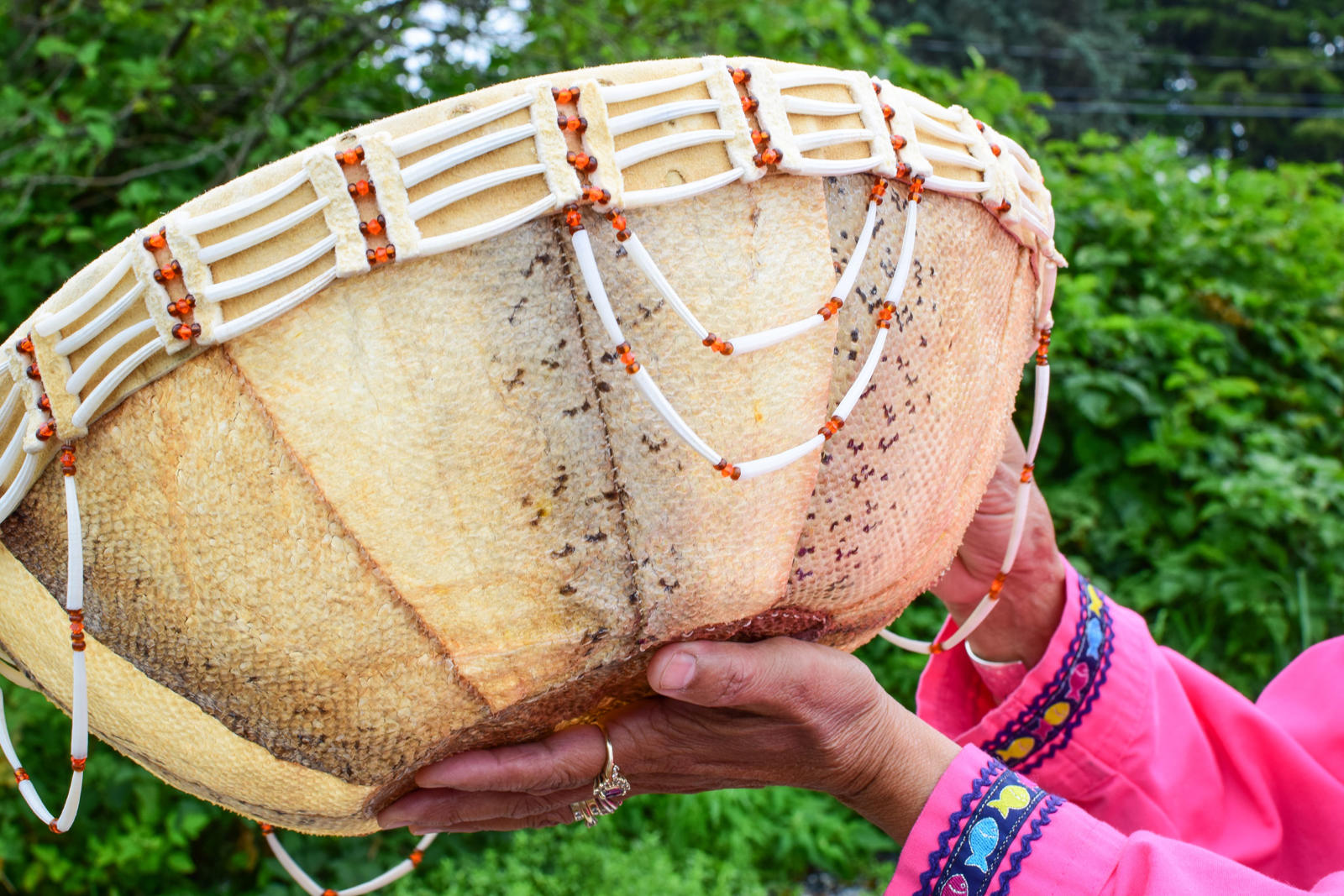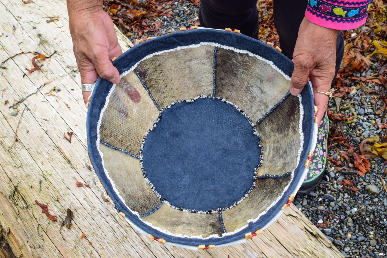 This late Coho run inspired Audrey’s interest in fish-skin sewing. “I said, ‘Wow, I know my ancestors such a long, long time ago probably used fish skin,’ but there was nothing written on it.”