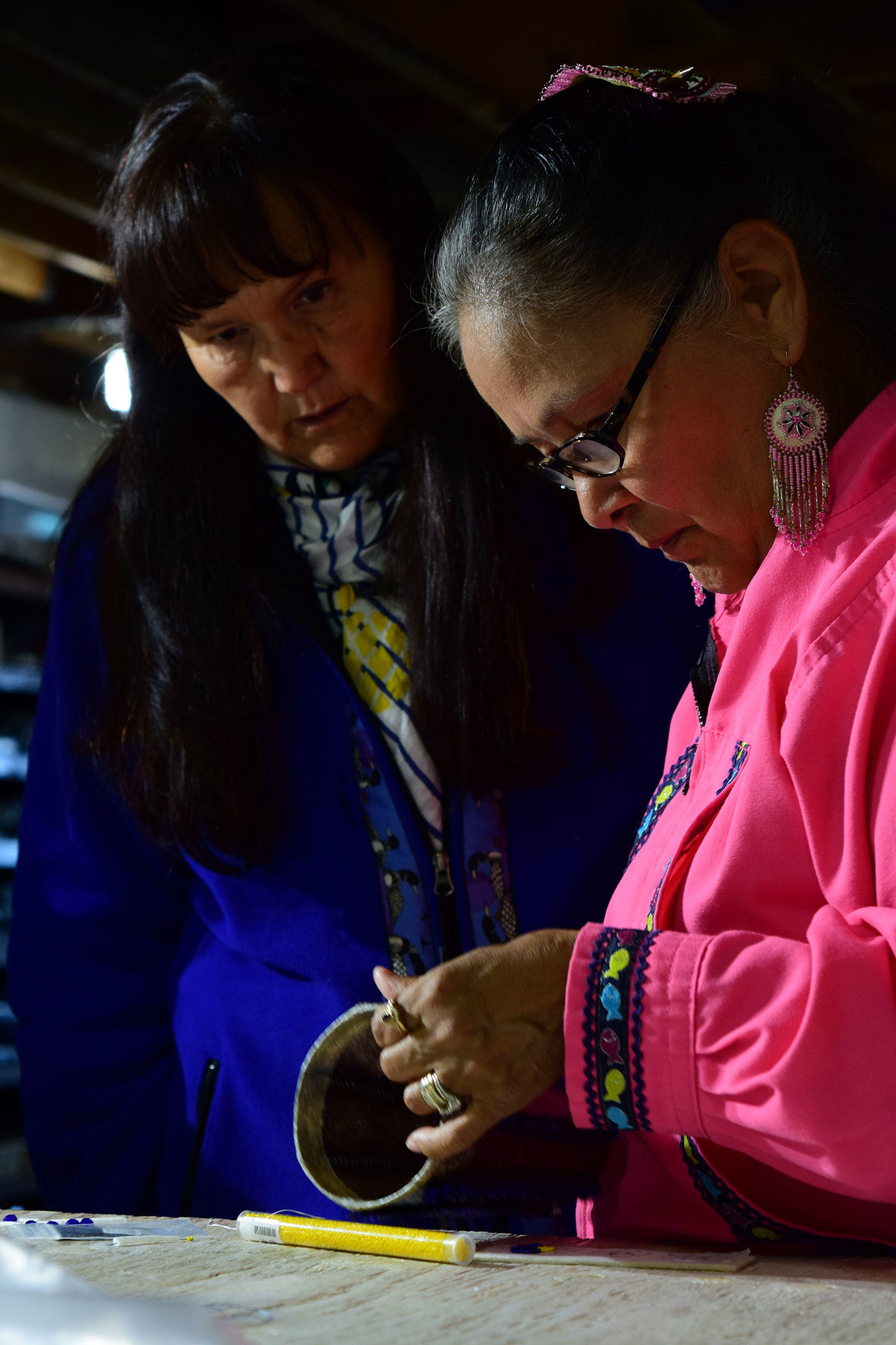 The students in this classroom are from all different backgrounds and experiences. One woman is visiting from England, another is taking Audrey’s class for a second year in a row.  Some of Audrey’s students have taken their newfound skills and shared them back home with their Yupik villages. As such, these re-awakened ancient skills have moved from Fran to Audrey to her students to new students. “The reward is just knowing that I am passing on something, and now I have two young ladies who are actually teaching it. So it’s just spreading out there and that’s what it’s about.”