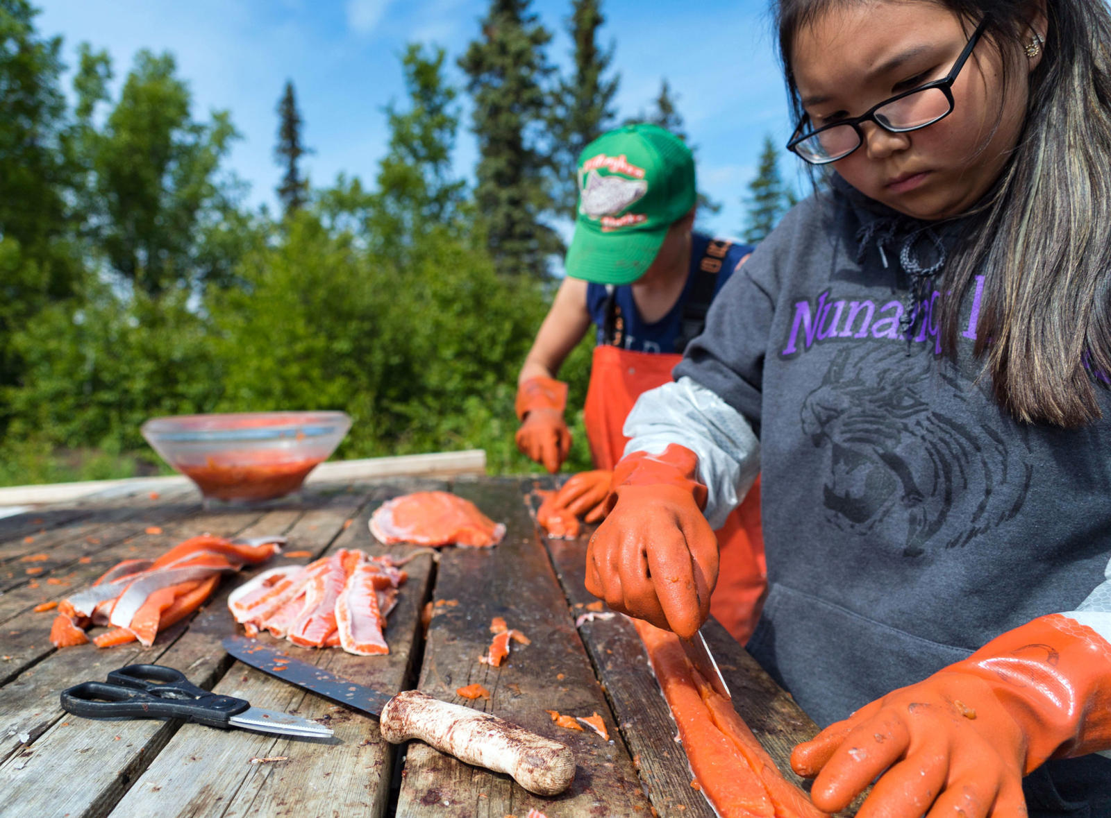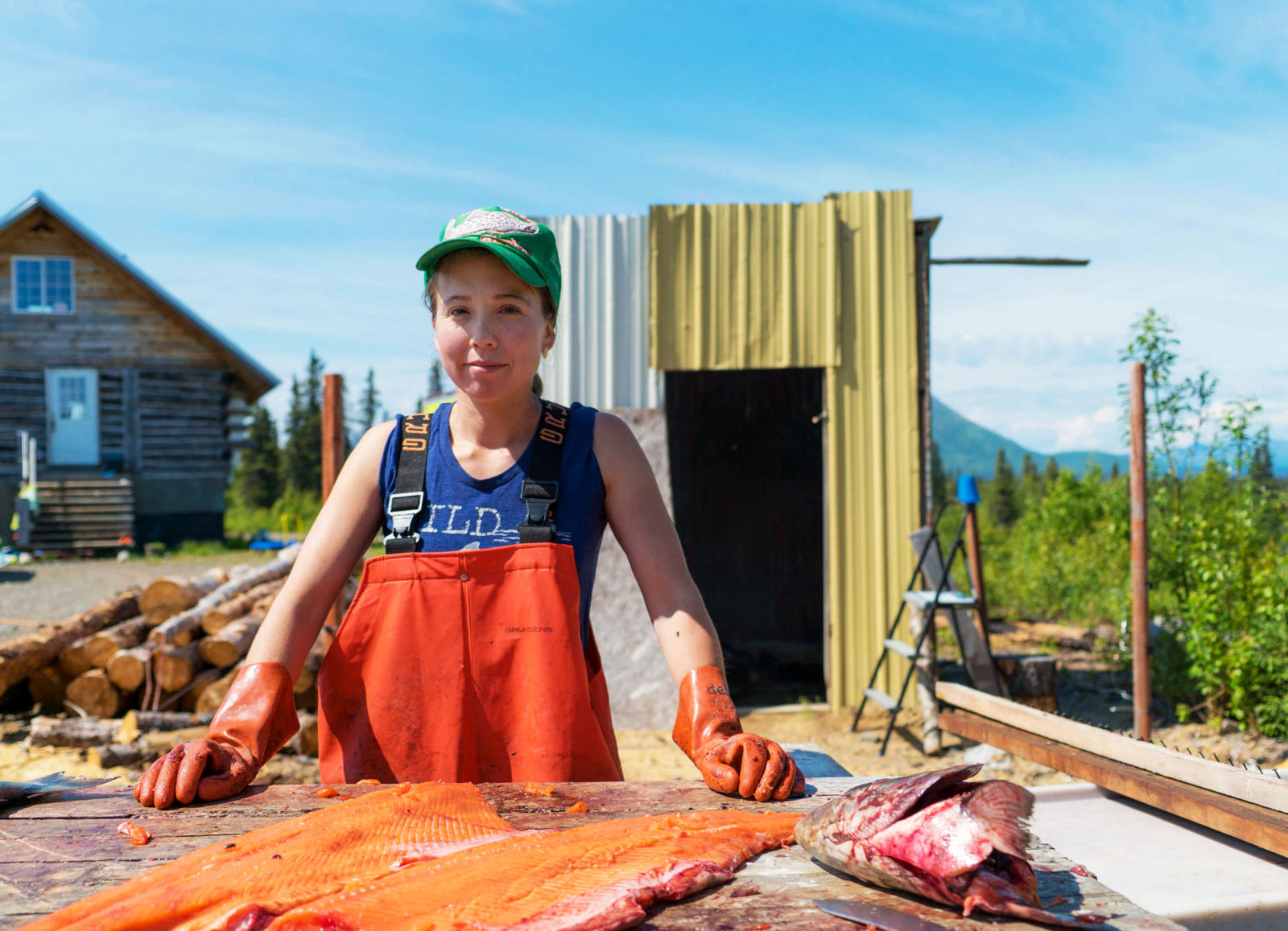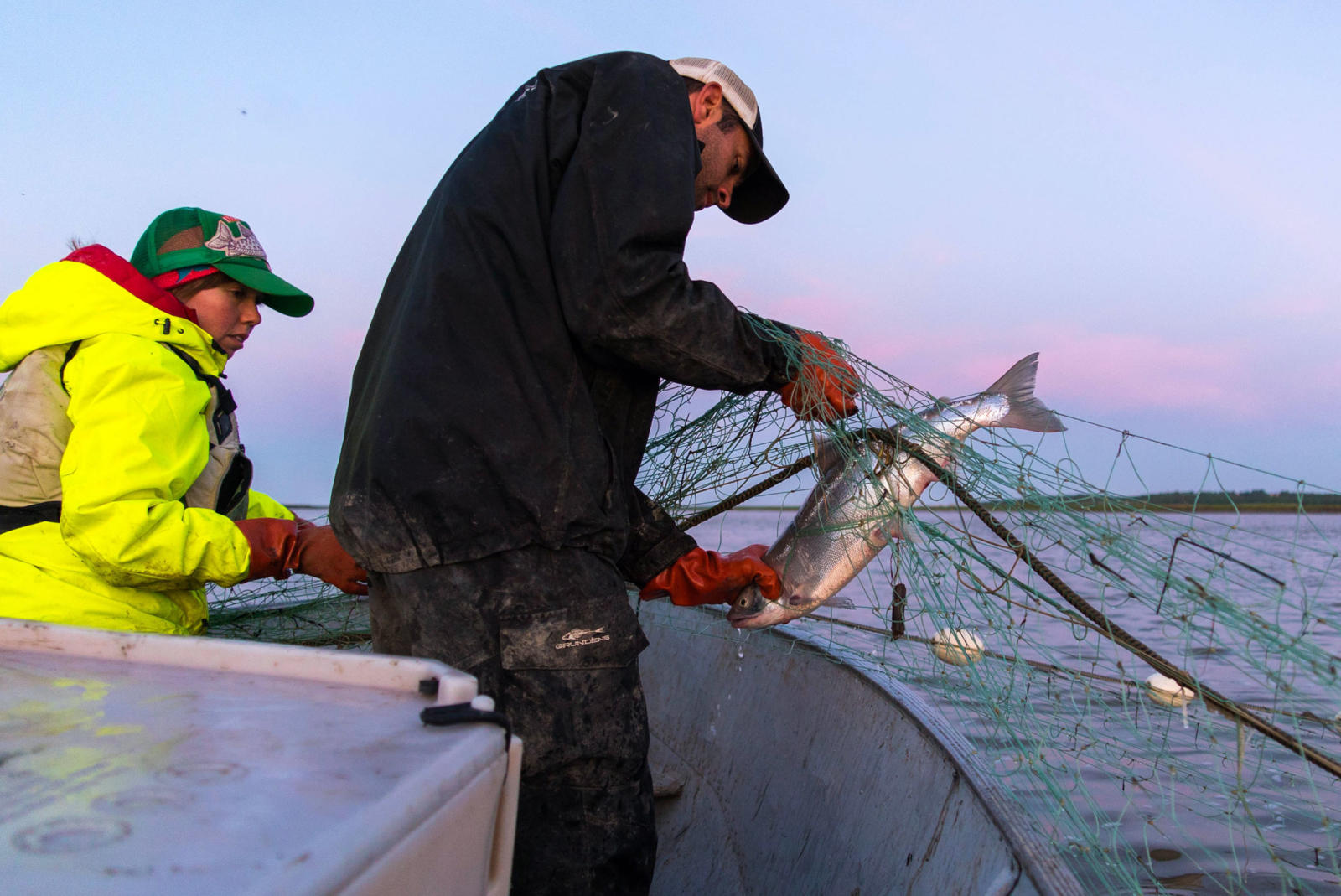 It’s 11pm under the gold-soaked sky of Dillingham’s summer solstice. Apayuq and her fishing partner, Chris Strub, are parked in the lot of the local boat ramp listening to the late night KDLG broadcast. Listeners call in to tell jokes, profess love, and send best wishes to the fishing fleet throughout Bristol Bay. Tonight, Apayuq and Chris are getting in on those good wishes. They wait for the tide to lap high enough to push their skiff off into the salmon-laden waters of the Wood River.