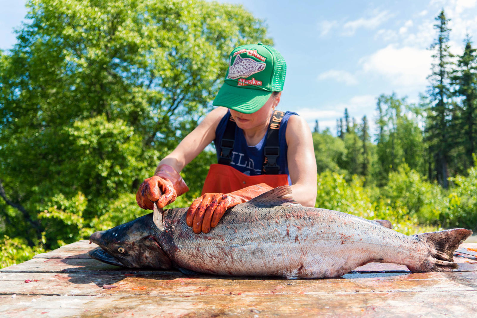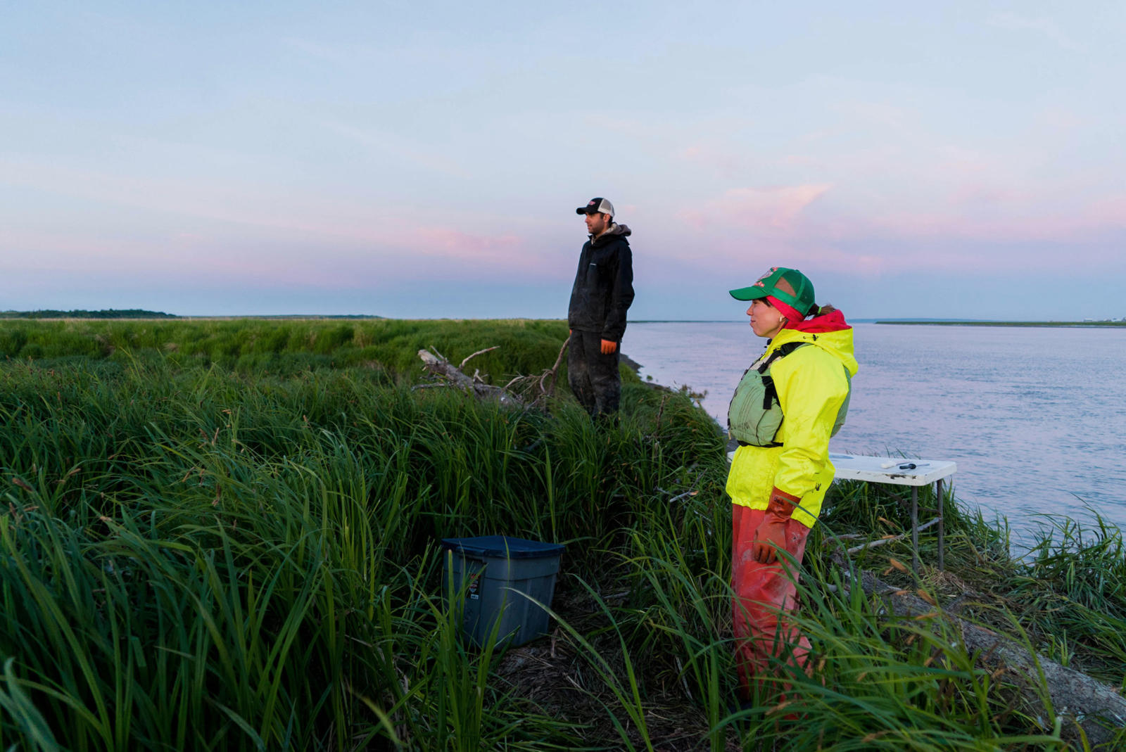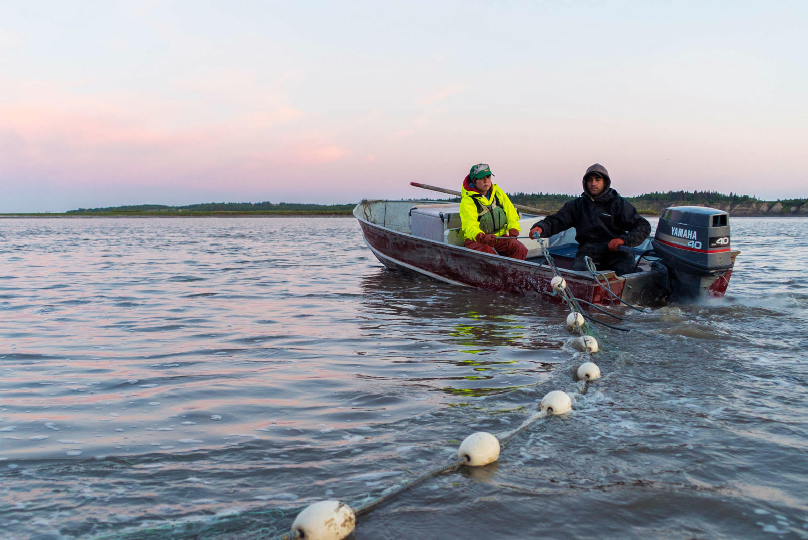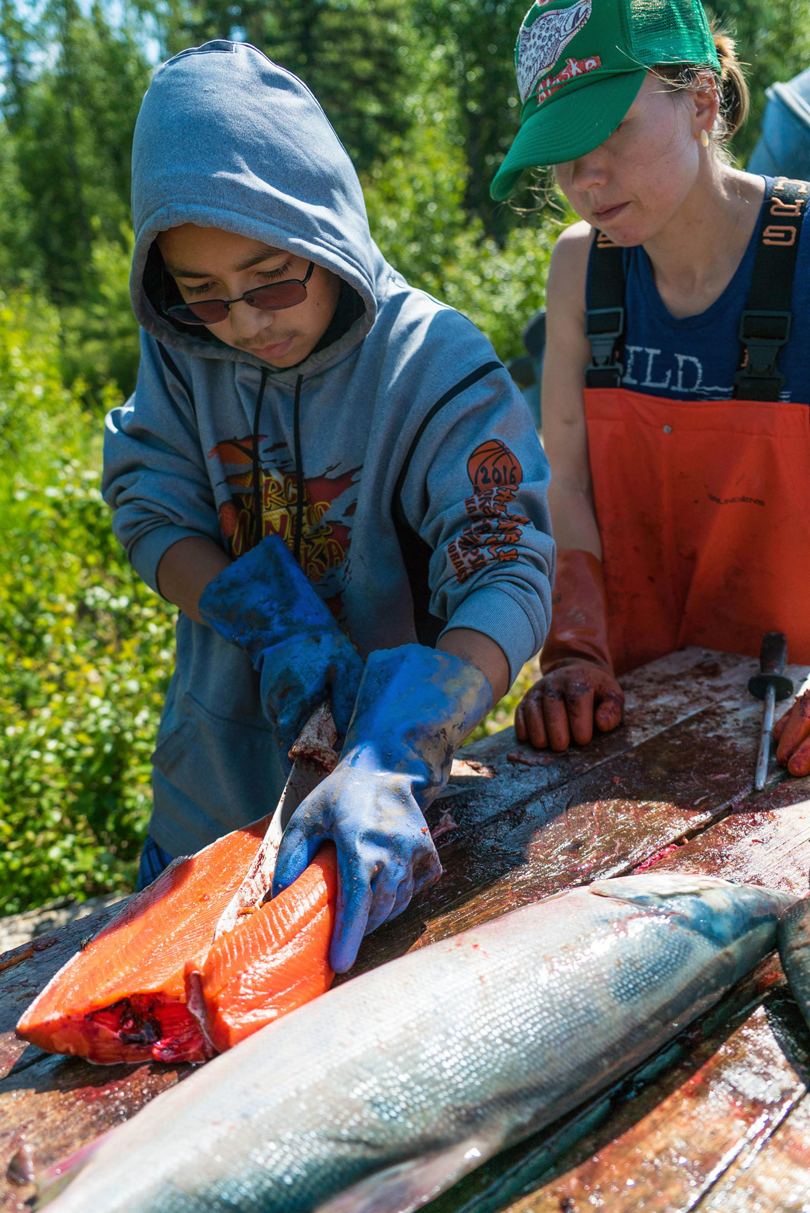 It’s 11pm under the gold-soaked sky of Dillingham’s summer solstice. Apayuq and her fishing partner, Chris Strub, are parked in the lot of the local boat ramp listening to the late night KDLG broadcast. Listeners call in to tell jokes, profess love, and send best wishes to the fishing fleet throughout Bristol Bay. Tonight, Apayuq and Chris are getting in on those good wishes. They wait for the tide to lap high enough to push their skiff off into the salmon-laden waters of the Wood River.