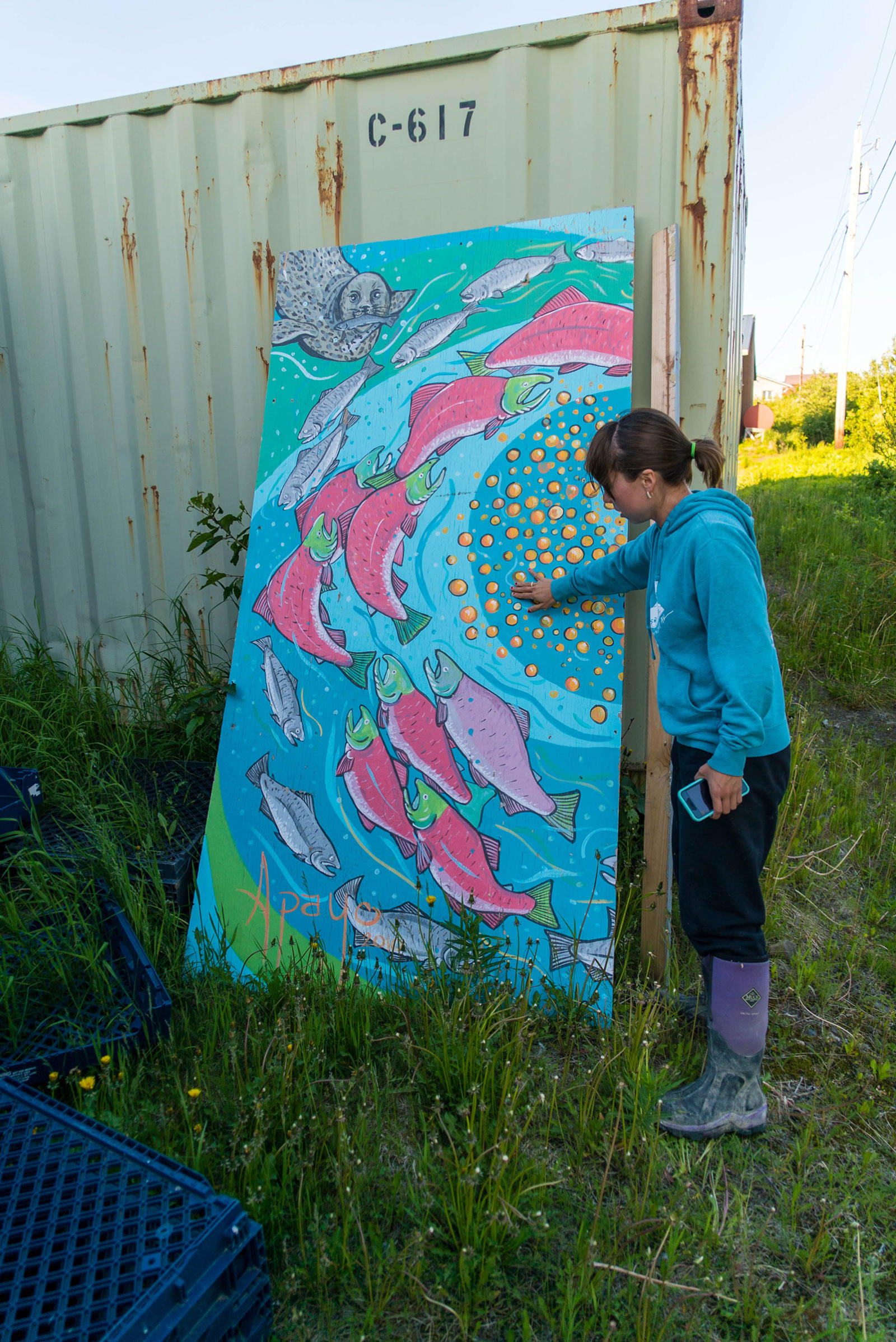 “I don’t think I could ever fully explain what art and salmon are to me…” Apayuq Moore starts, “but I’ll try.”
