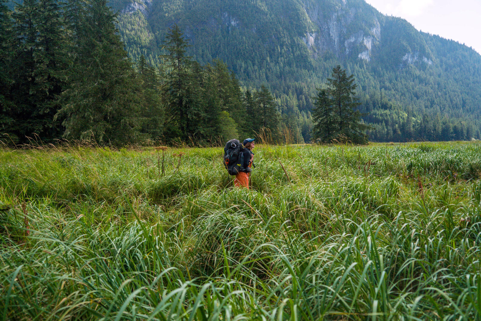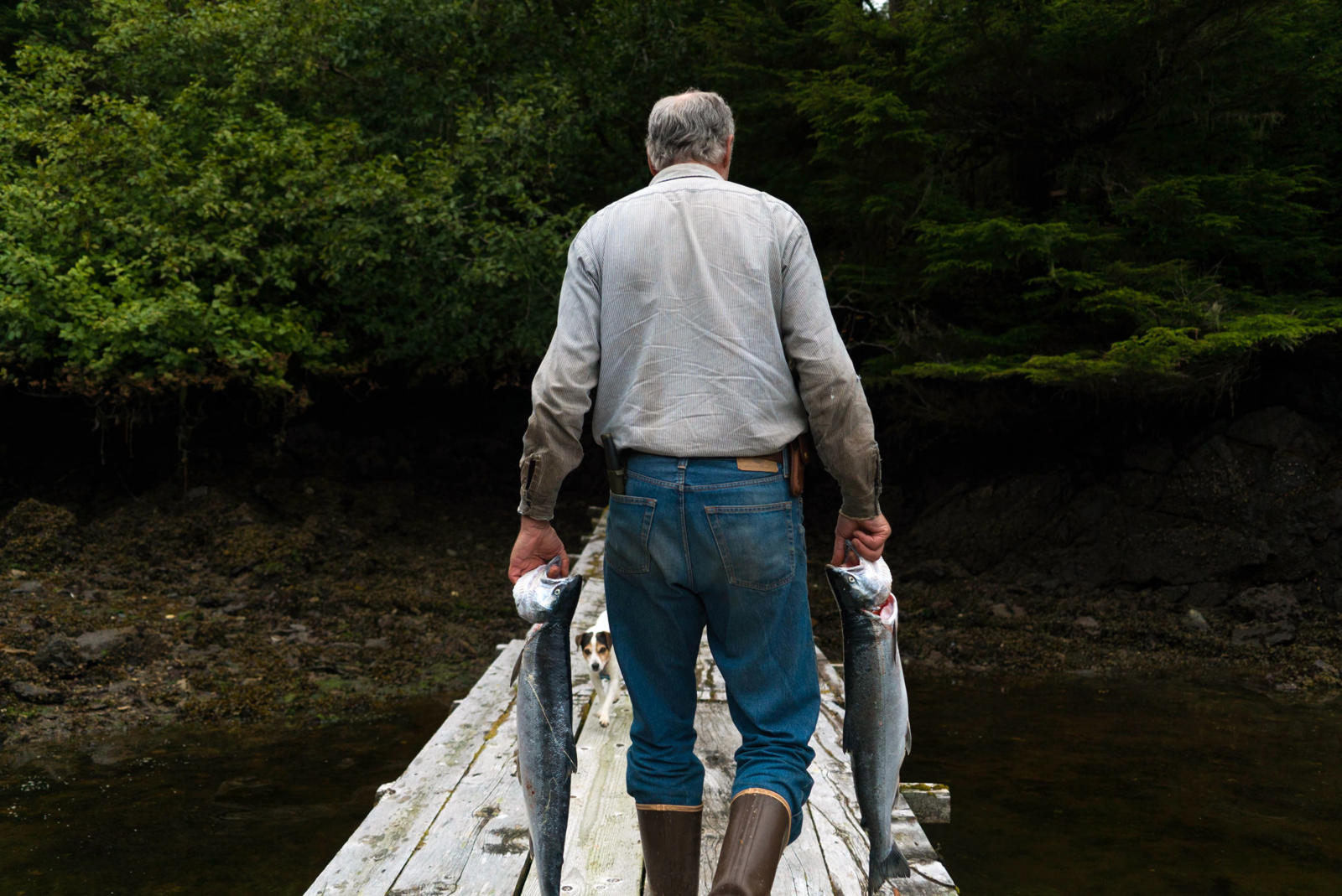 The grasslands sway and flicker with drops of dew as Elsa looks towards the velvet cliffs of old growth forest surrounding her on the northern end of Prince of Wales Island. Ravens, crows, gulls and eagles soar in an orchestra of bird calls. Spawning salmon tremble in the rush of the nearby stream.