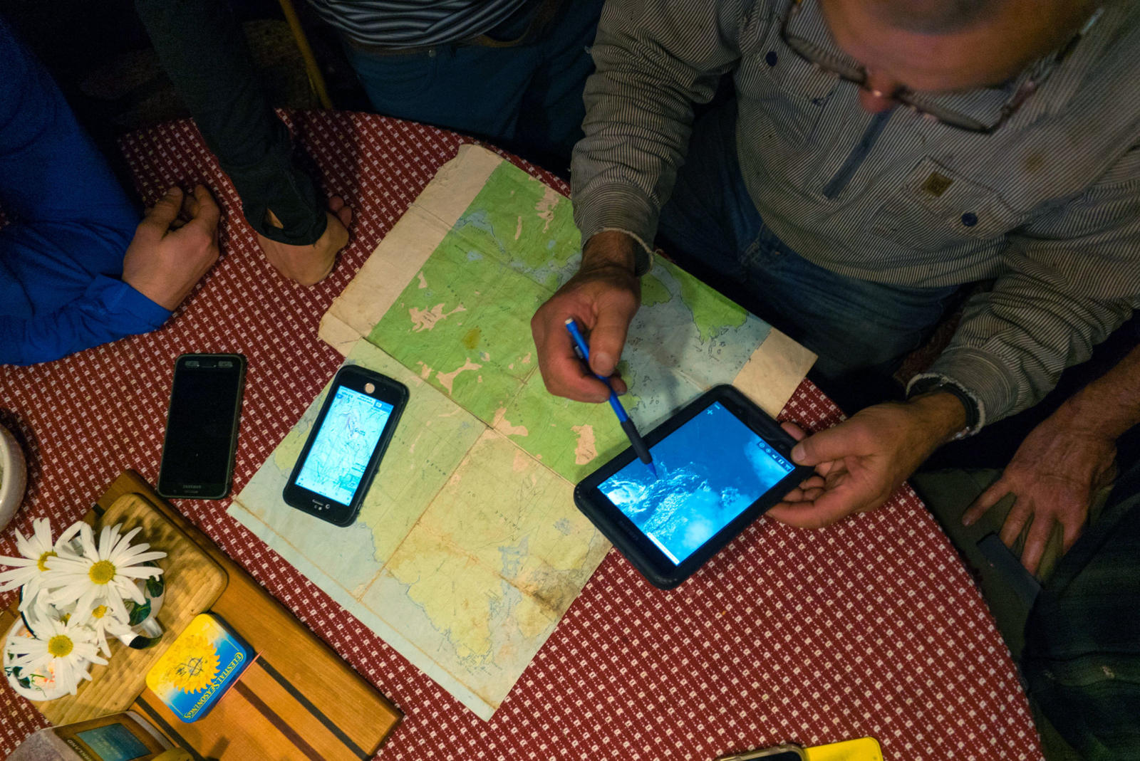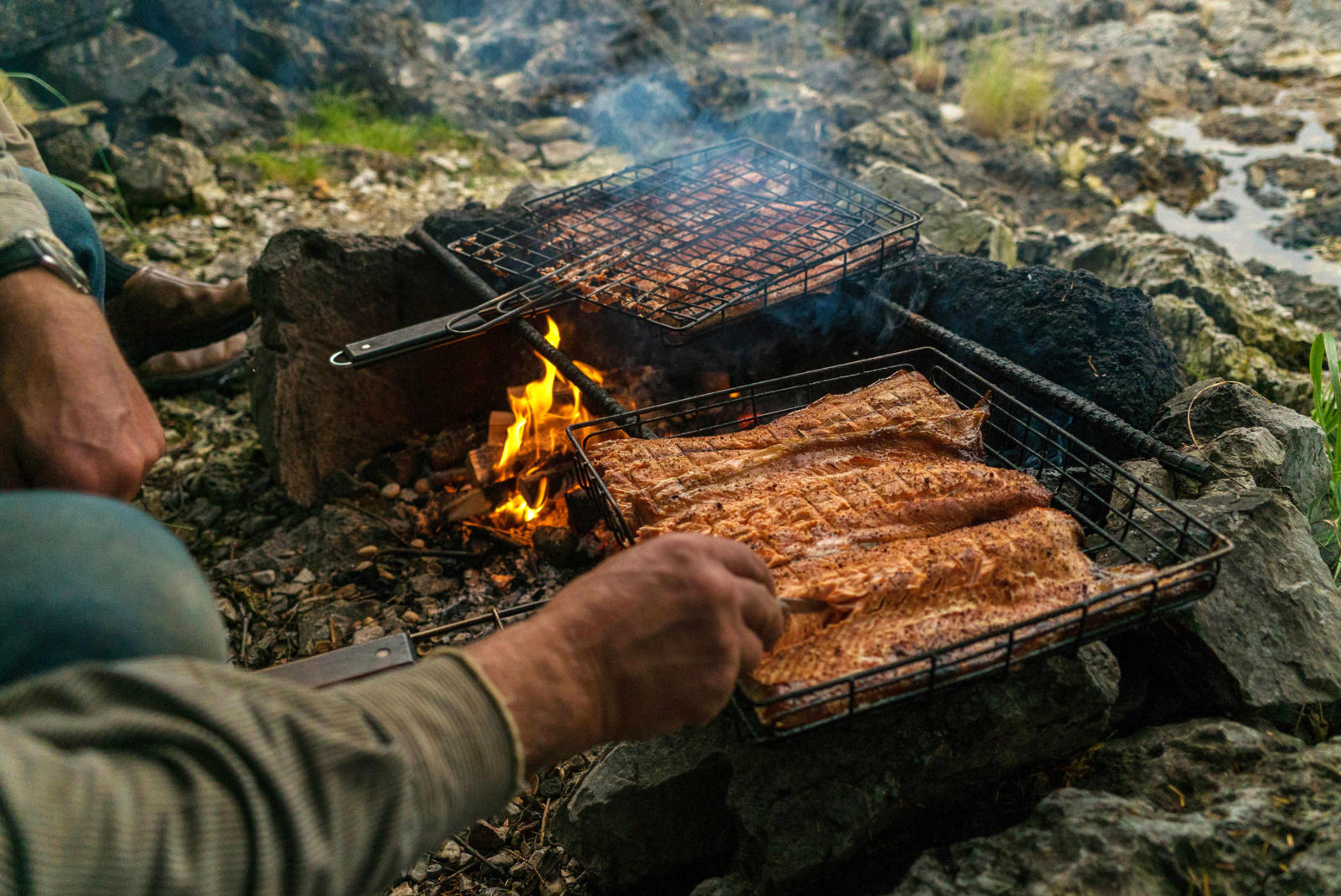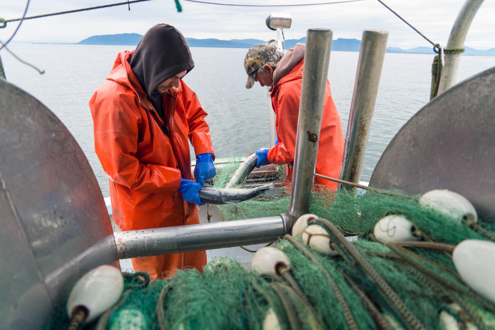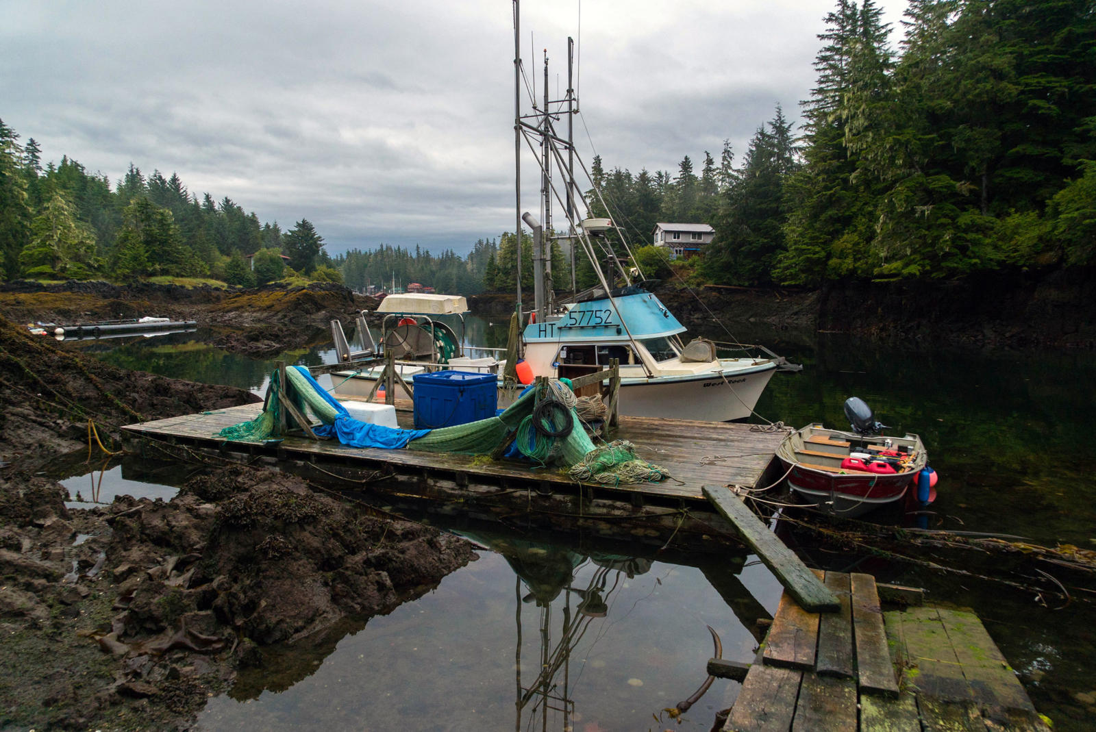 Massive limestone peaks vault from the hills beyond the bow of Don Hernandez’s skiff as he heads for the shore of Suk Dáa Bay. His friend, Elsa Sebastian, hops out and hefts her trekking pack onto the beach. In true fisherman form, she suits up, pulling her Grundens bibs over her Xtratufs before setting off with her hiking partners.