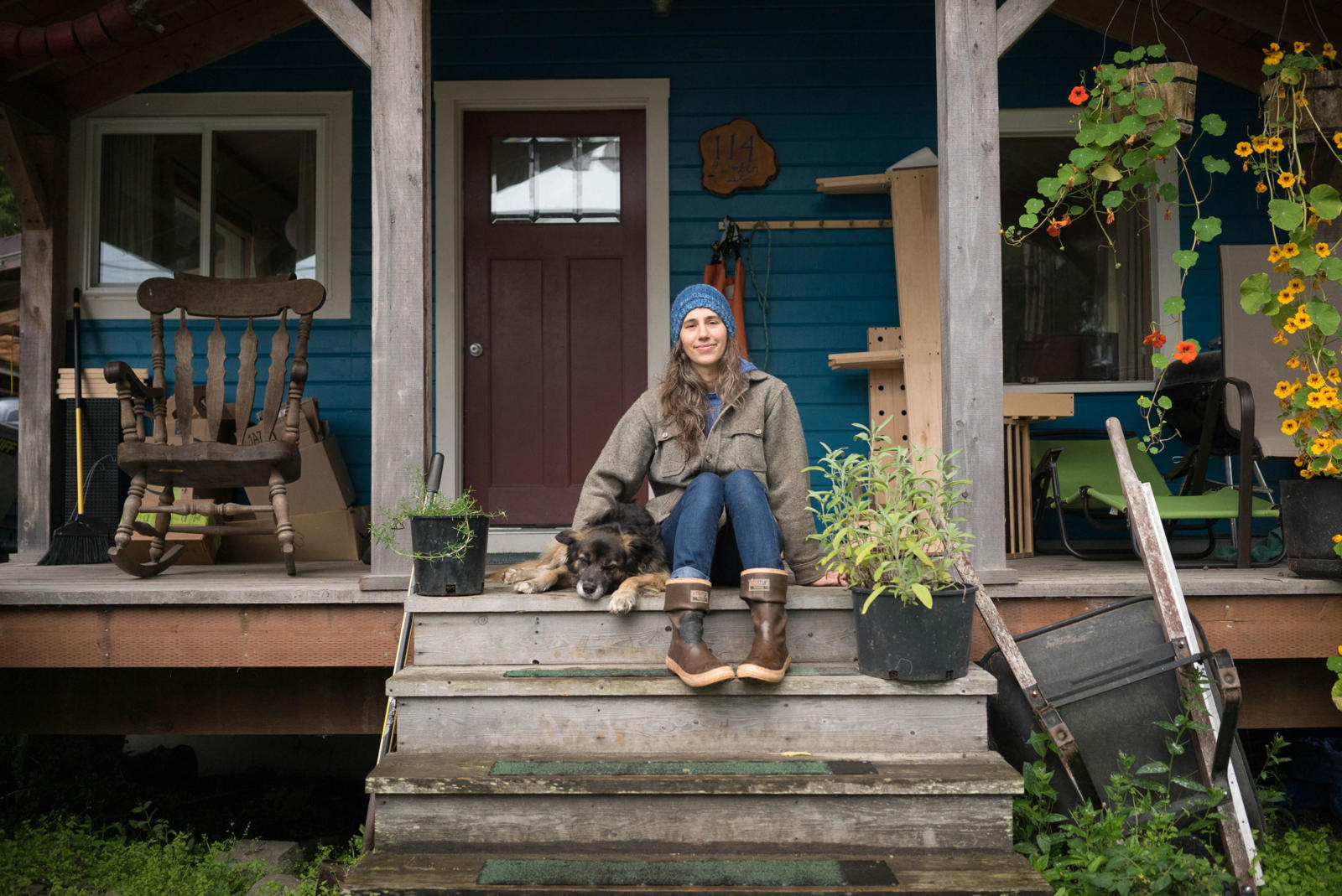 Malena Marvin lives with Keeja the dog and Eric the fisherman in Petersburg, Alaska, an island fishing community with a history of strong female leaders. The birthplace of nationally-recognized indigenous civil rights hero Elizabeth Peratrovich, Petersburg was also home to her contemporary Amy Hollingstad, a powerful Tlingit activist and two-time Alaska Native Sisterhood president whose historic home Malena and Eric are now restoring. Malena teaches yoga at the public library and spends any extra hours breathing life into a mural project to honor Elizabeth Peratrovich in downtown Petersburg.