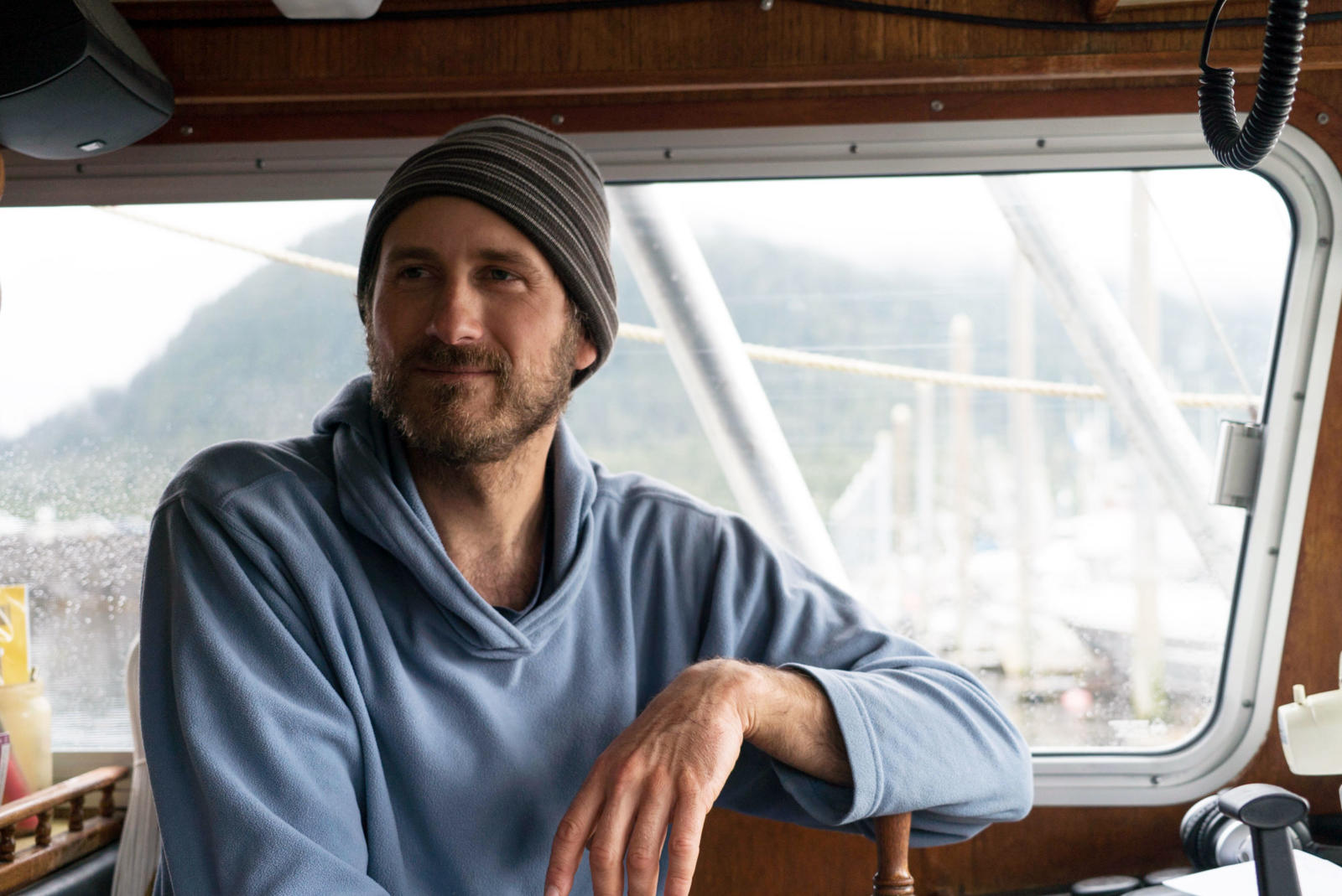 Braced against rollers in the slick pit of our salmon troller, we breathe in North America’s great temperate rainforest, misty and edging the grey seas of Chatham Strait where we fish. With rain beating rubber clothes, scales in hair, and blood in teeth we run the hydraulic spools that pull up writhing salmon on fathoms of steel line.