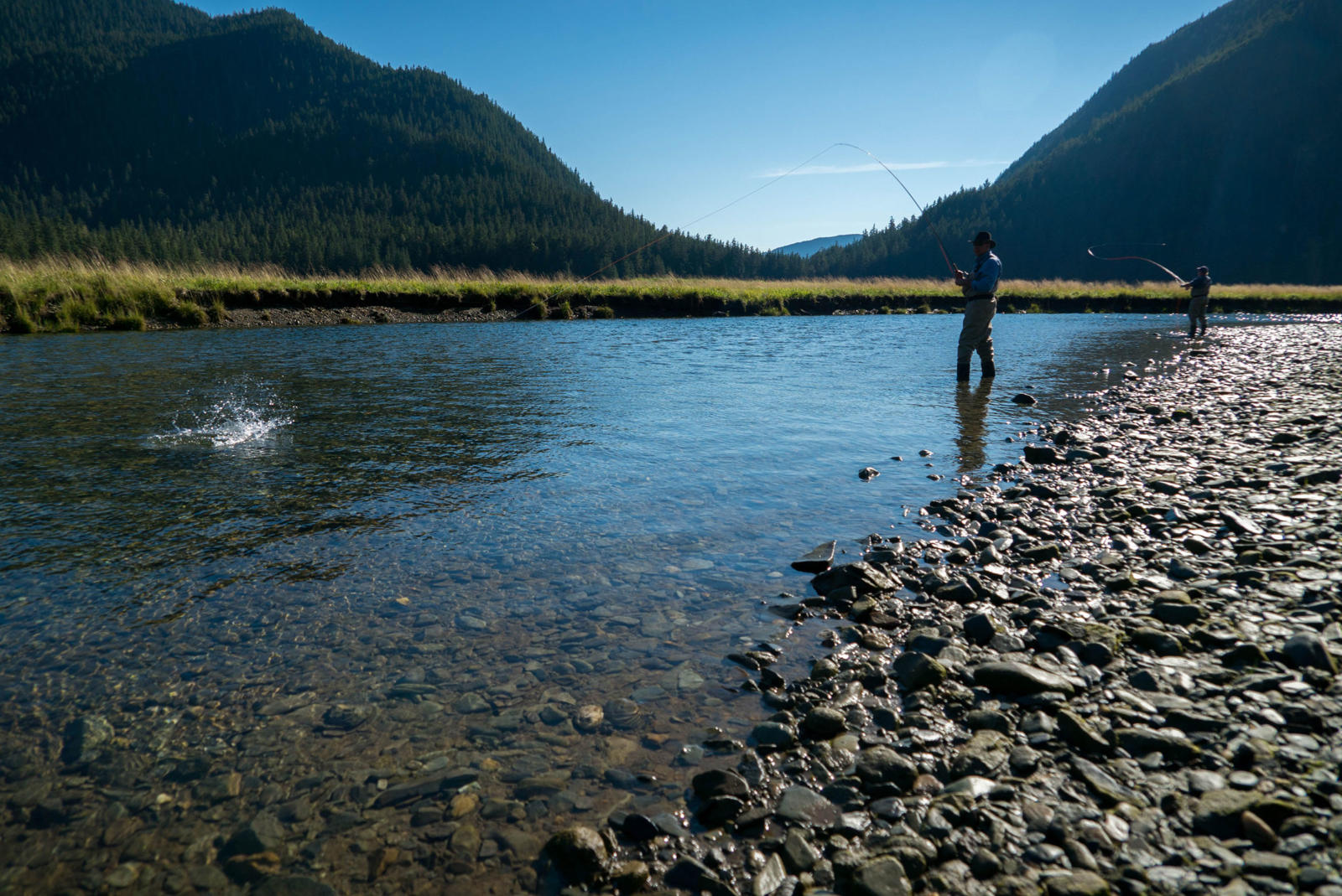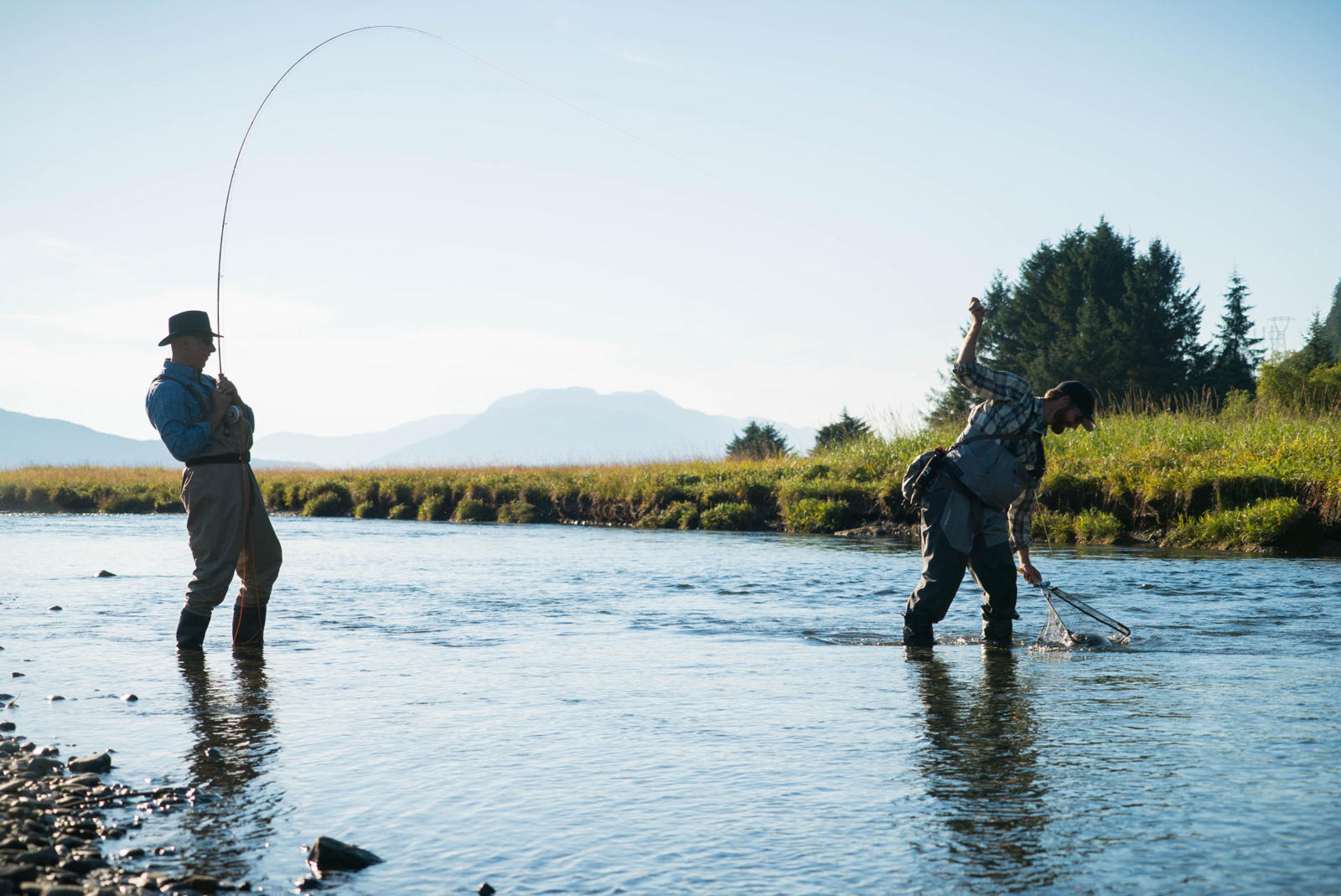 Fly-fishing rods awaken to trembling arcs with taught lines on the run. Exhilaration. A liquid dance between angler and salmon with crescendos of splashing fervor — every time, exhilaration.