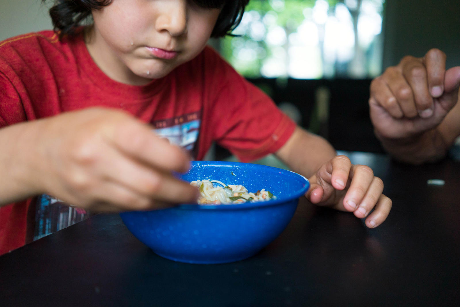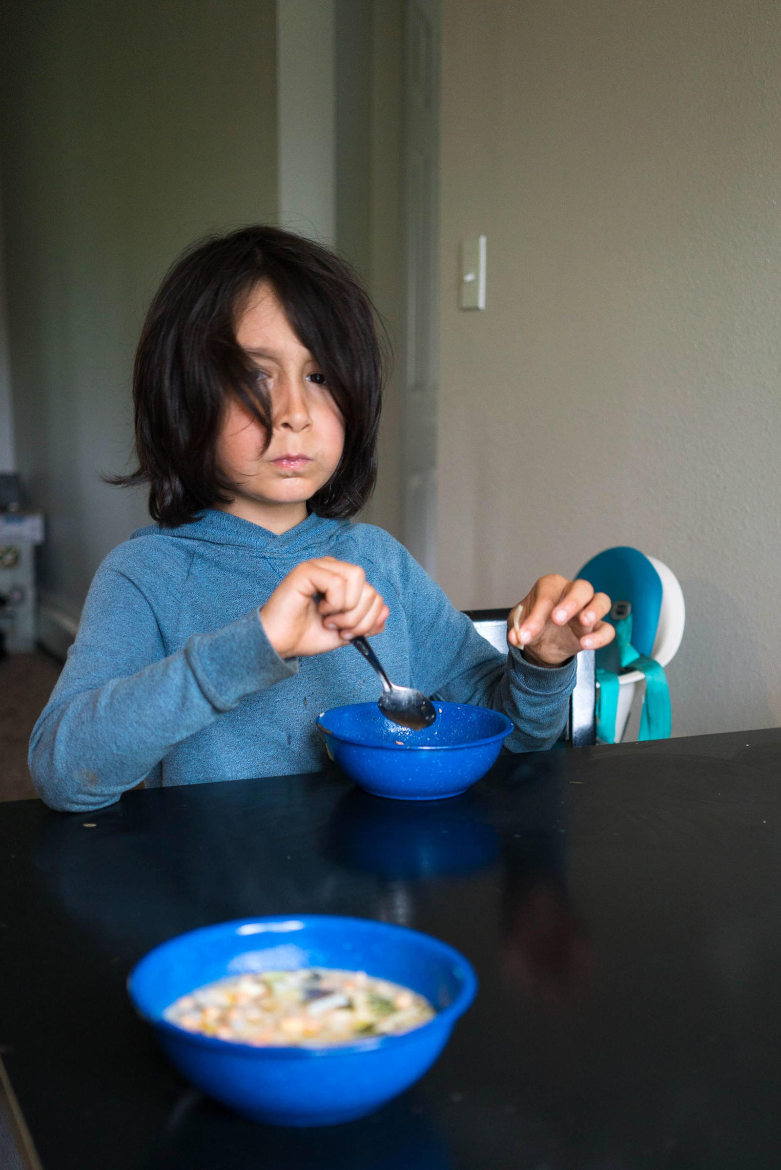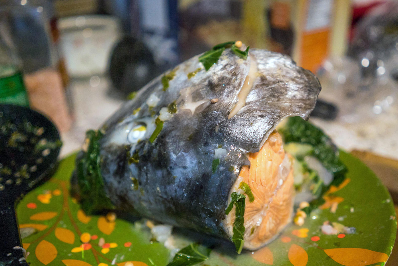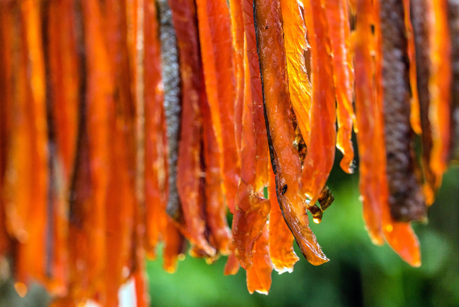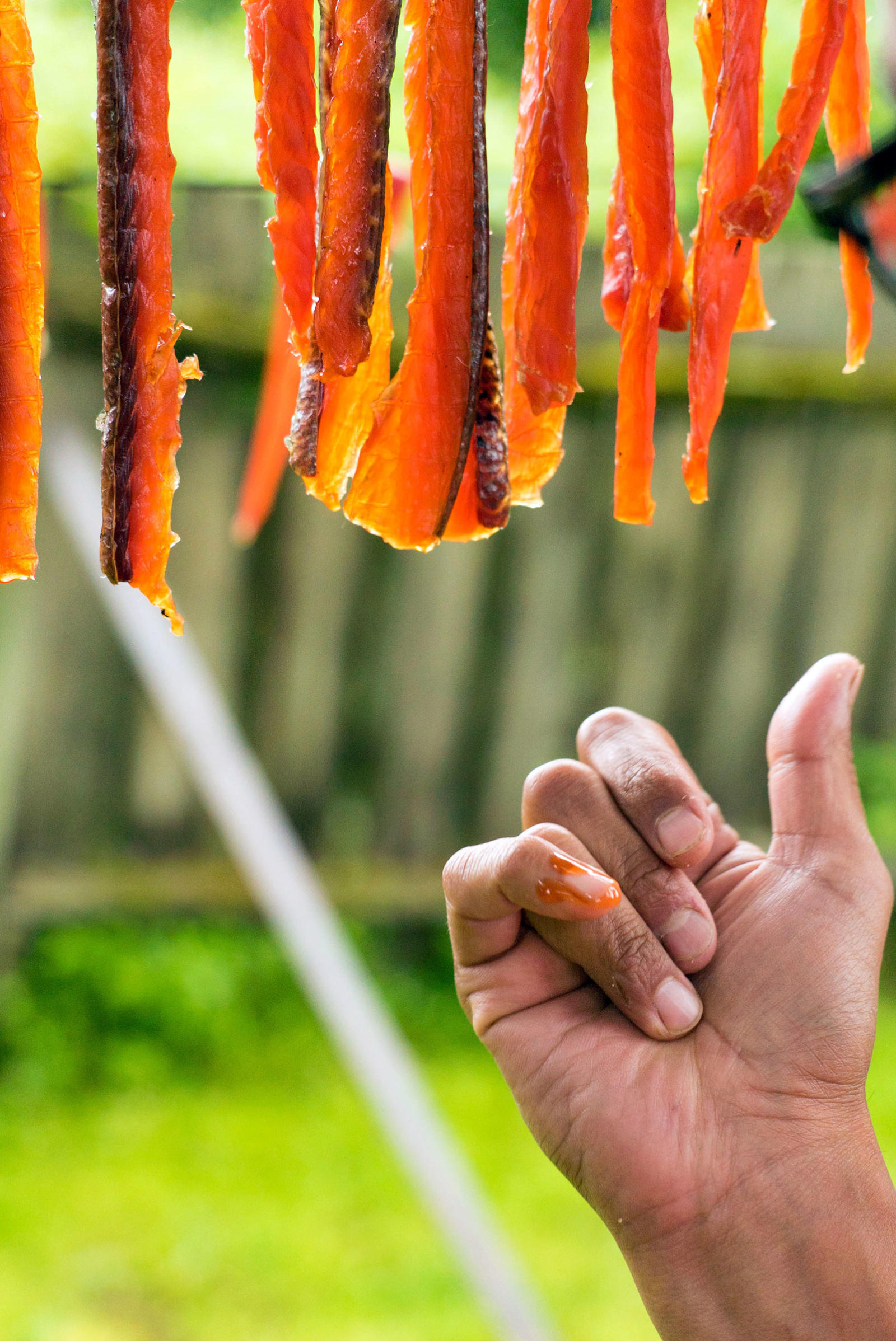 Ginger, miso, bok choy, celery, noodles, seaweed, tofu, and salmon eggs surround the two fresh king salmon heads that stain his white cutting board light orange. Warren chops and dices in his kitchen while his two older kids scurry in and out of the house. His baby crawls happily around the living room; his middle child pops in briefly to jokingly feed crackers to the fish heads. Warren and his wife live in a blue house that sits on the edge of a suburb in southwest Anchorage. Through the woods, at the end of the street, Campbell Creek feeds into Turnagain Arm keeping Warren’s relation to the sea and the fish it provides close by.