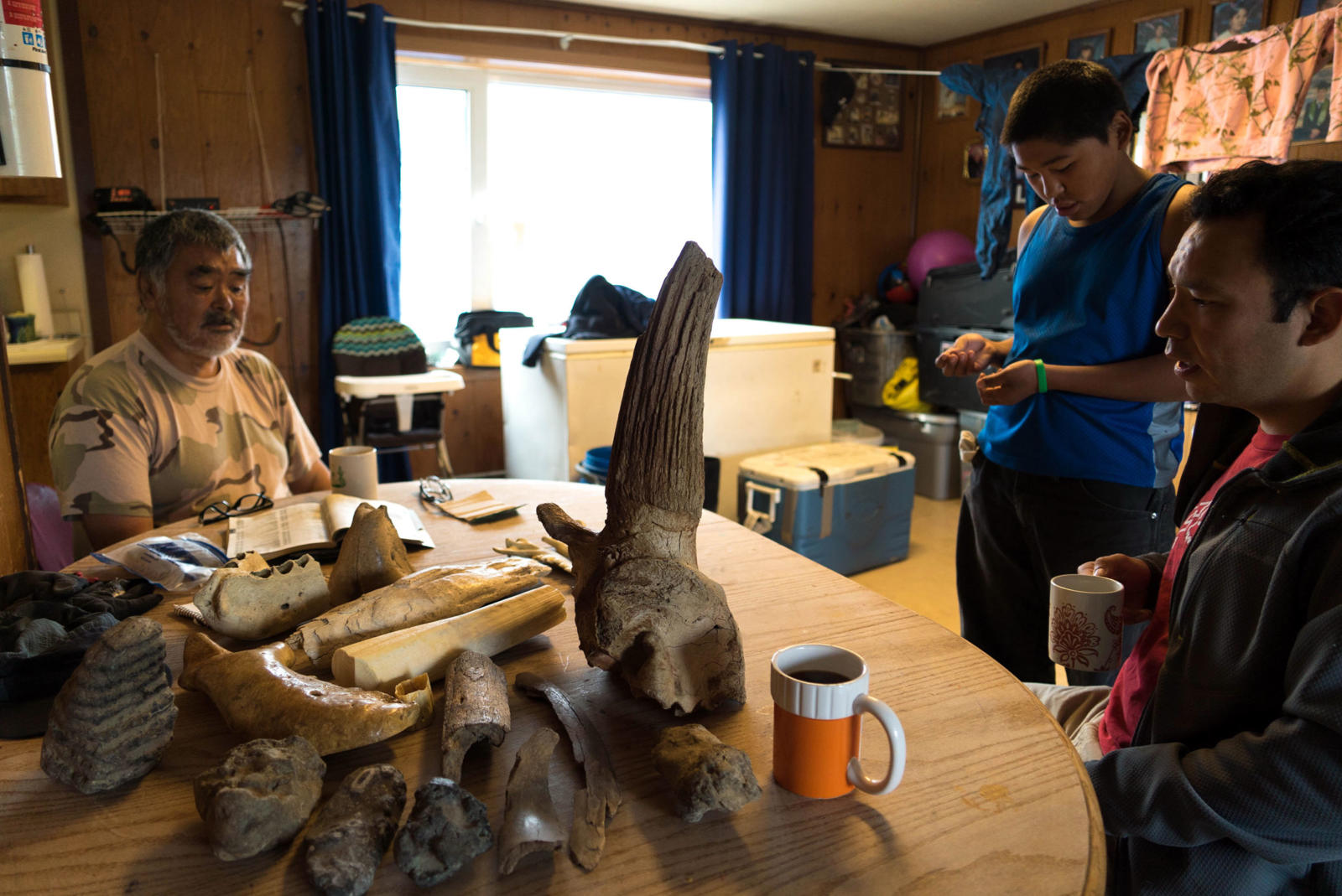 It’s August and Maasak is sipping coffee with his neighbor, Qalu. They are reciting the seasonal cycle of wild foods that has sustained their people for thousands of years. Qalu’s grandson, Vince, comes in and out of the room readying himself before they all head out for a day of fishing on the Noatak river.